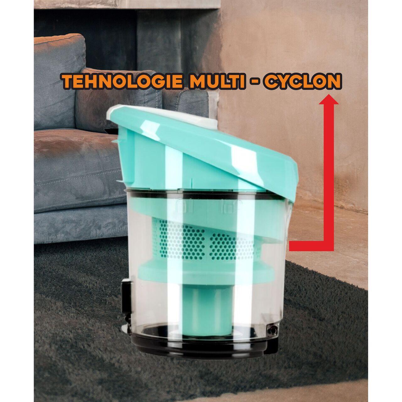 Hausberg HB-2005VR прахосмукачка без торба, циклонна, сухо засмукване, Hepa филтър, мултициклонна технология, 3L, 700W, 79dB, бяла -Тюркоаз