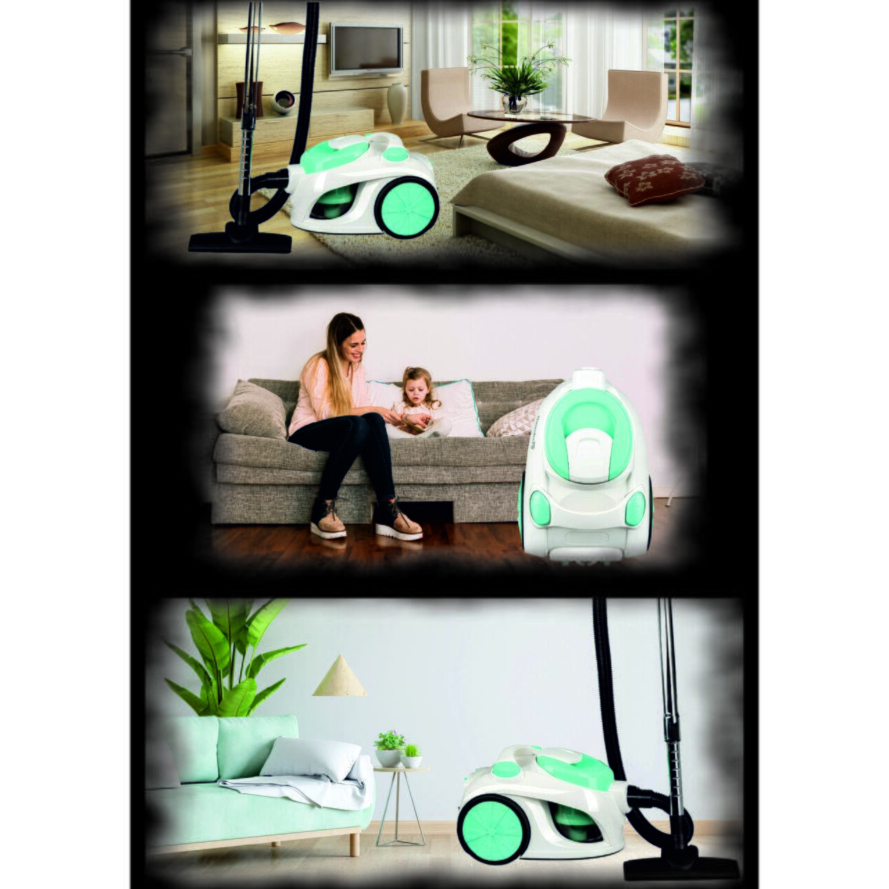 Практична, универсална и с подвижен и миещ се резервоар, прахосмукачката без торба Hausberg HB-2005VR има циклонна технология, която увеличава максимално всмукателната мощност и продължителност на филтъра.