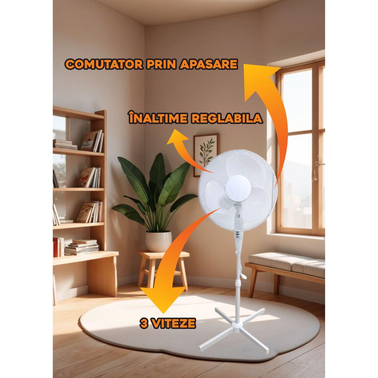 Вентилатор крачен VEN-2, 50W, 40 инча, 3 скорости, регулируема височина, Бял