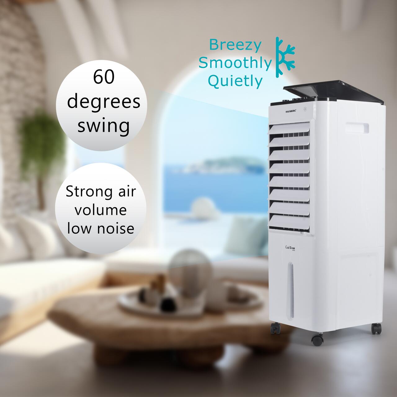 12-литровият резервоар за вода и затвореният воден цикъл правят HB-5963AB екологичен и икономичен продукт, който допринася за естествено намаляване на температурата. Идеален е за големи помещения, благодарение на функцията за автоматично осцилиране от 60° , която разпределя въздуха ефективно в цялата стая.