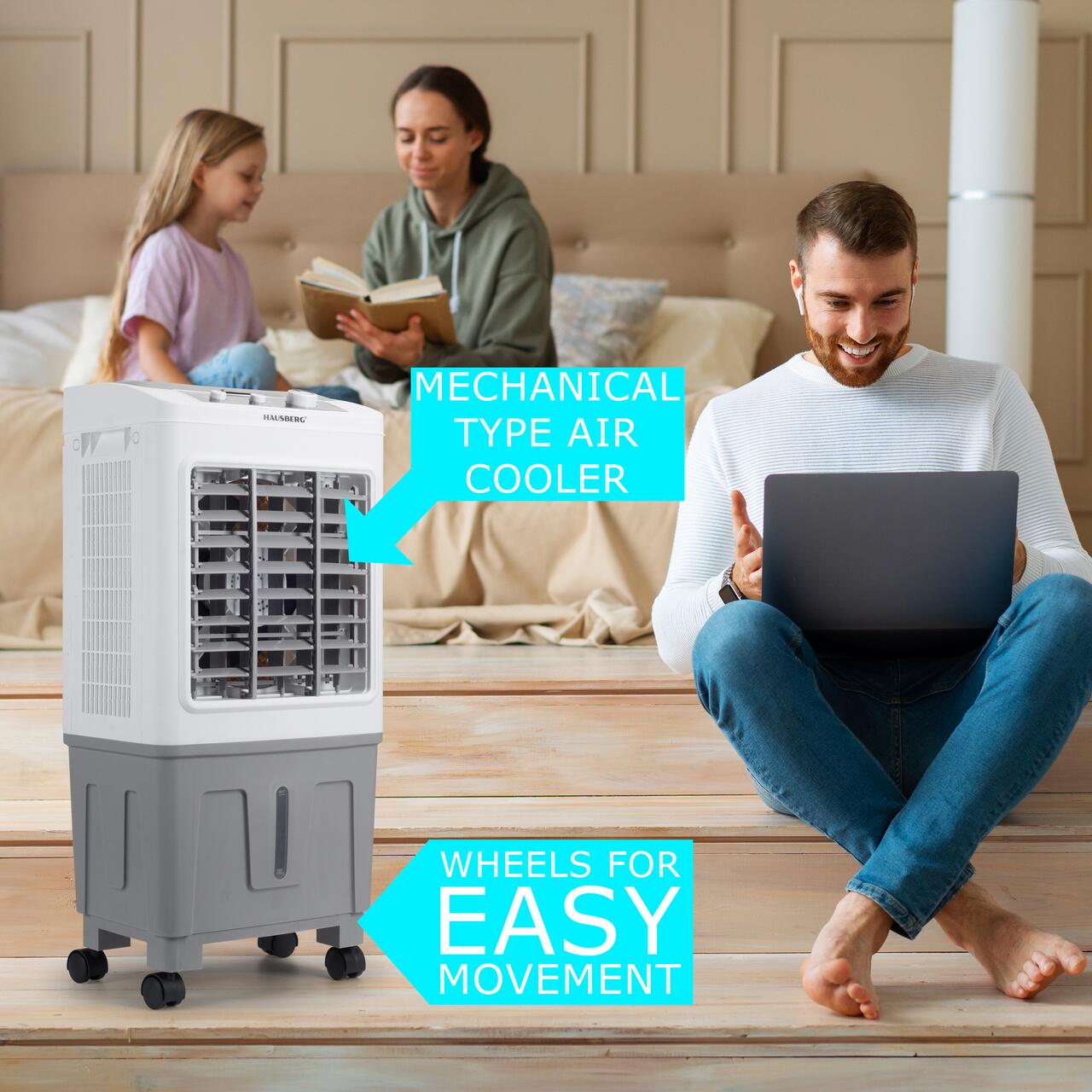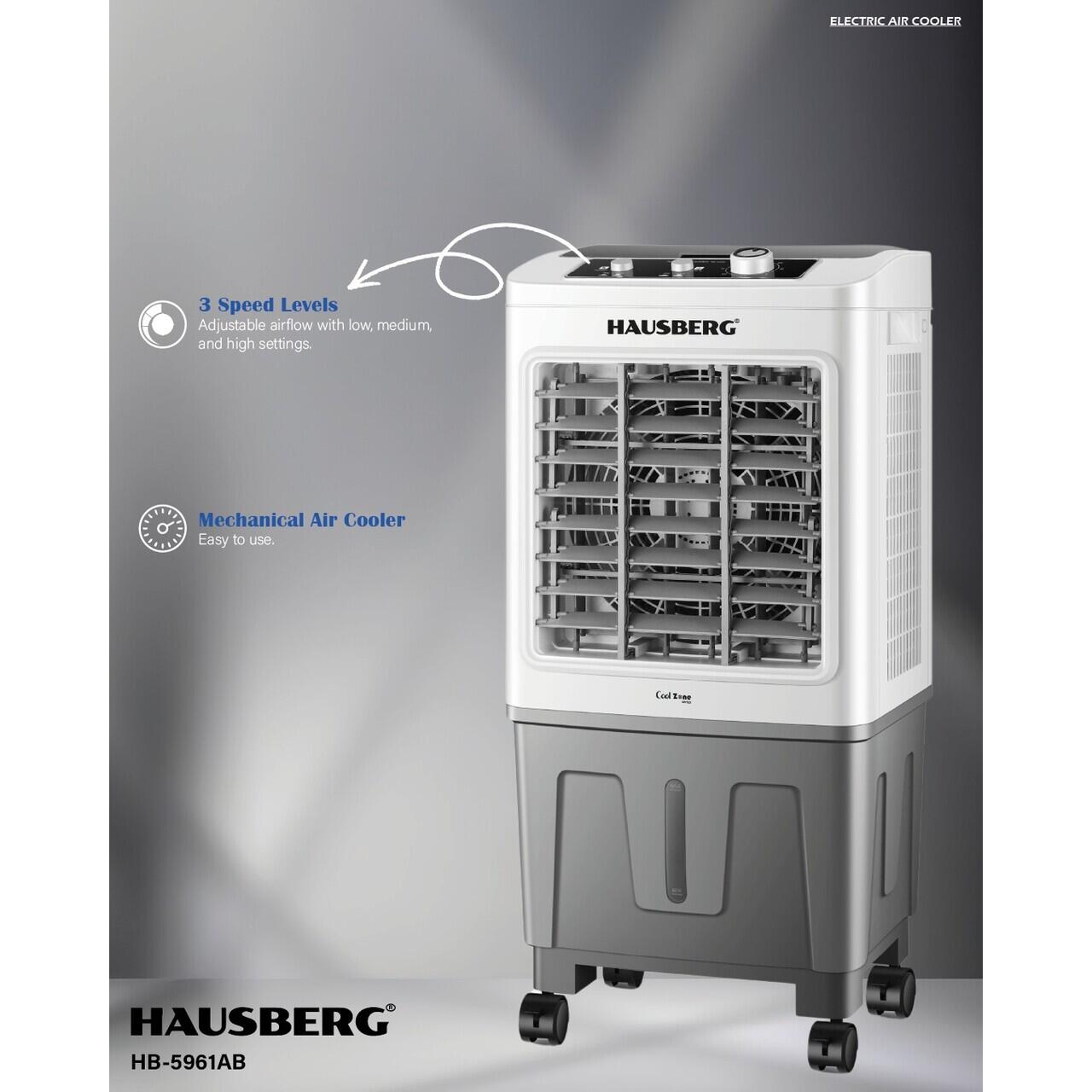 Hausberg HB-5961AB е преносим охладител за въздух с механично управление , проектиран да осигурява ефективна вентилация в големи пространства, предлагайки перфектен баланс между простота, висок охлаждащ капацитет и издръжливост.