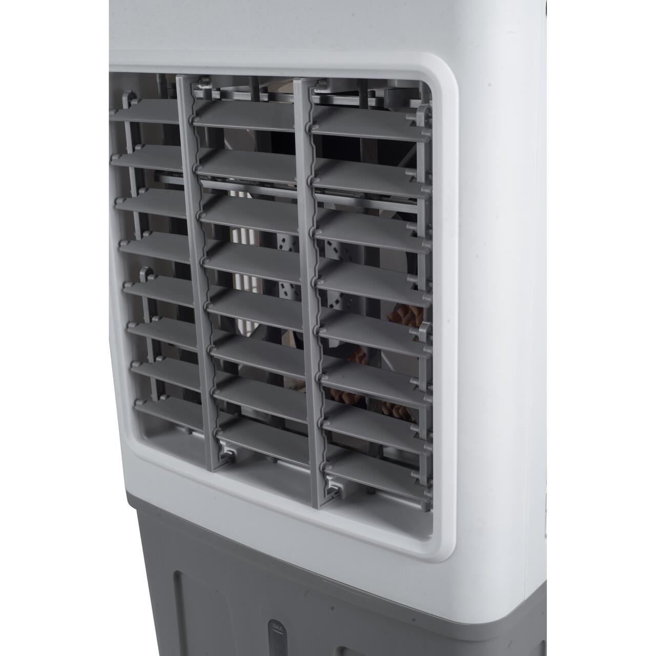 Оборудвано с мотор с мощност 75 W , това устройство предлага 3 настройки за скорост (ниска, средна и висока), лесно регулируеми чрез интуитивния механичен панел. С 20-литров резервоар за вода и 2 включени кутии за лед , той е способен да поддържа въздуха хладен за дълги периоди без чести намеси.