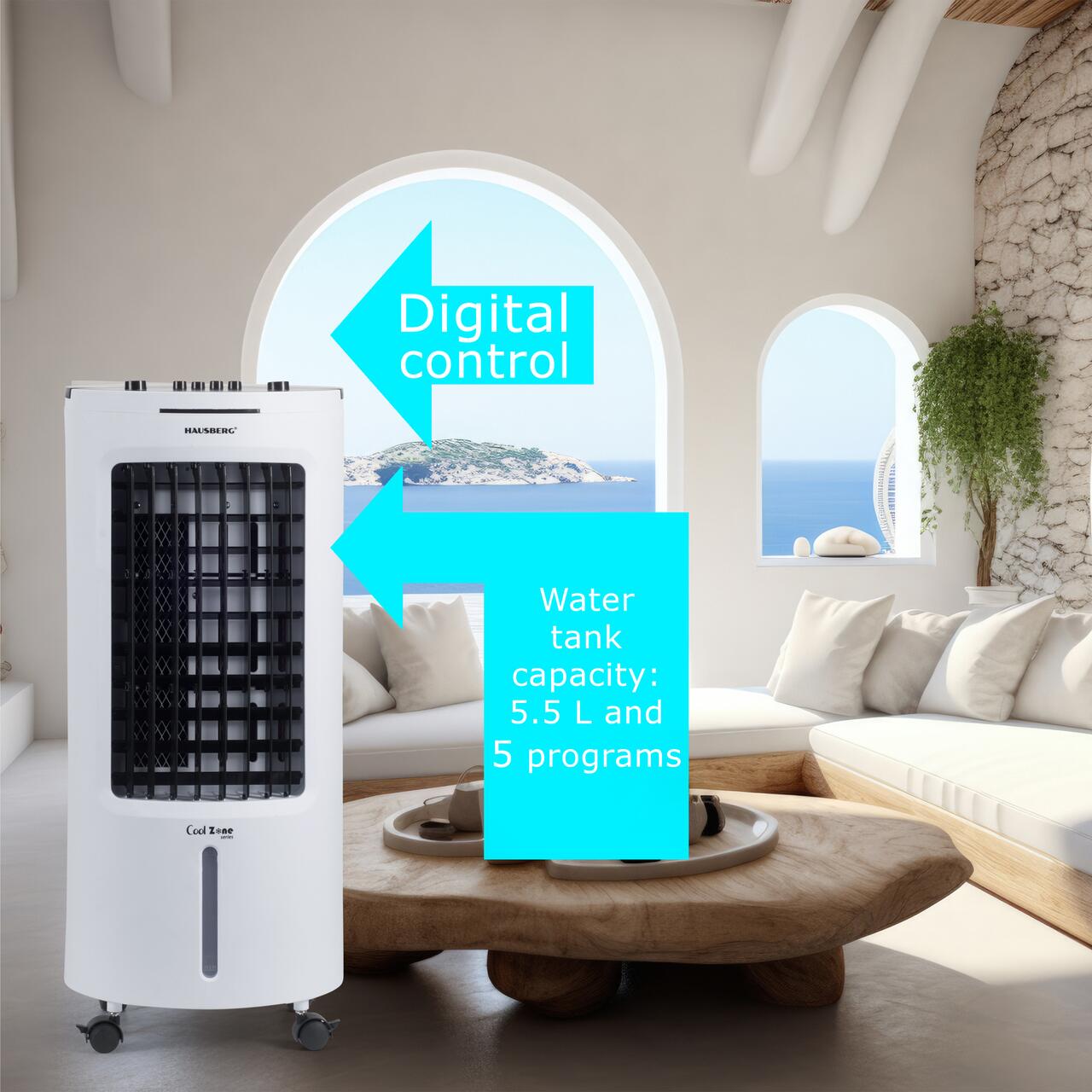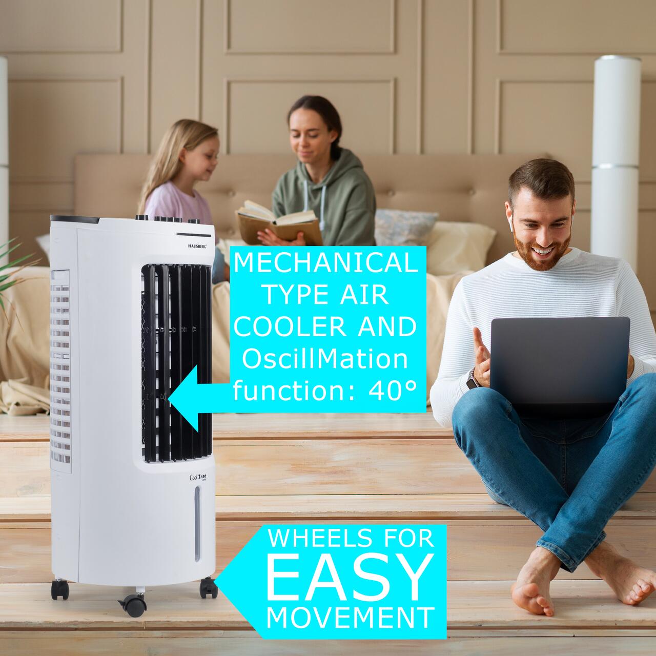 Изработен от издръжливи материали, оборудван с изцяло меден кабел с VDE щепсел , HB-5962AB е лесен за употреба и поддръжка. Стабилната производителност, мобилността и ниската консумация на енергия го препоръчват за всяко пространство, където няма класическа климатизация.
