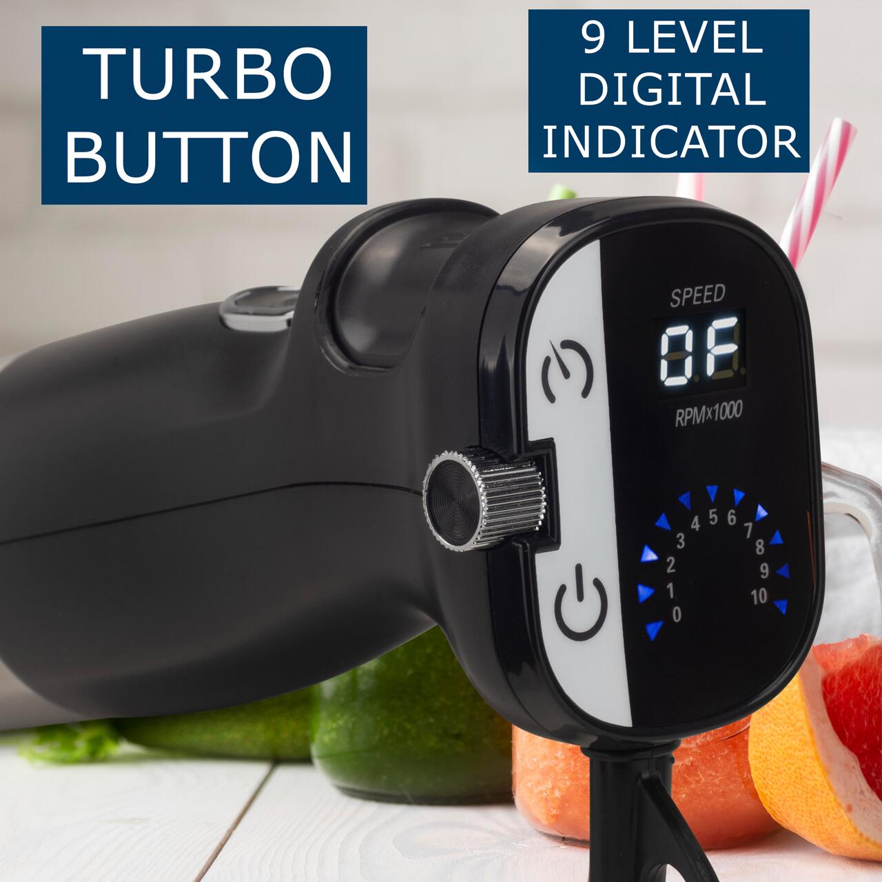 - 10-степенен контрол на скоростта : Позволява прецизно регулиране на скоростта, осигурявайки гъвкавост за разнообразни рецепти, а функцията Turbo добавя допълнително усилване на мощността за по-плътни храни.