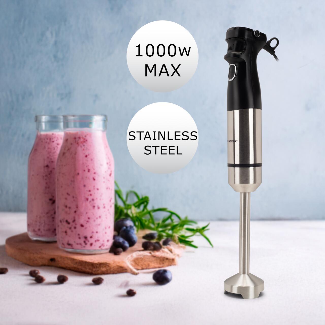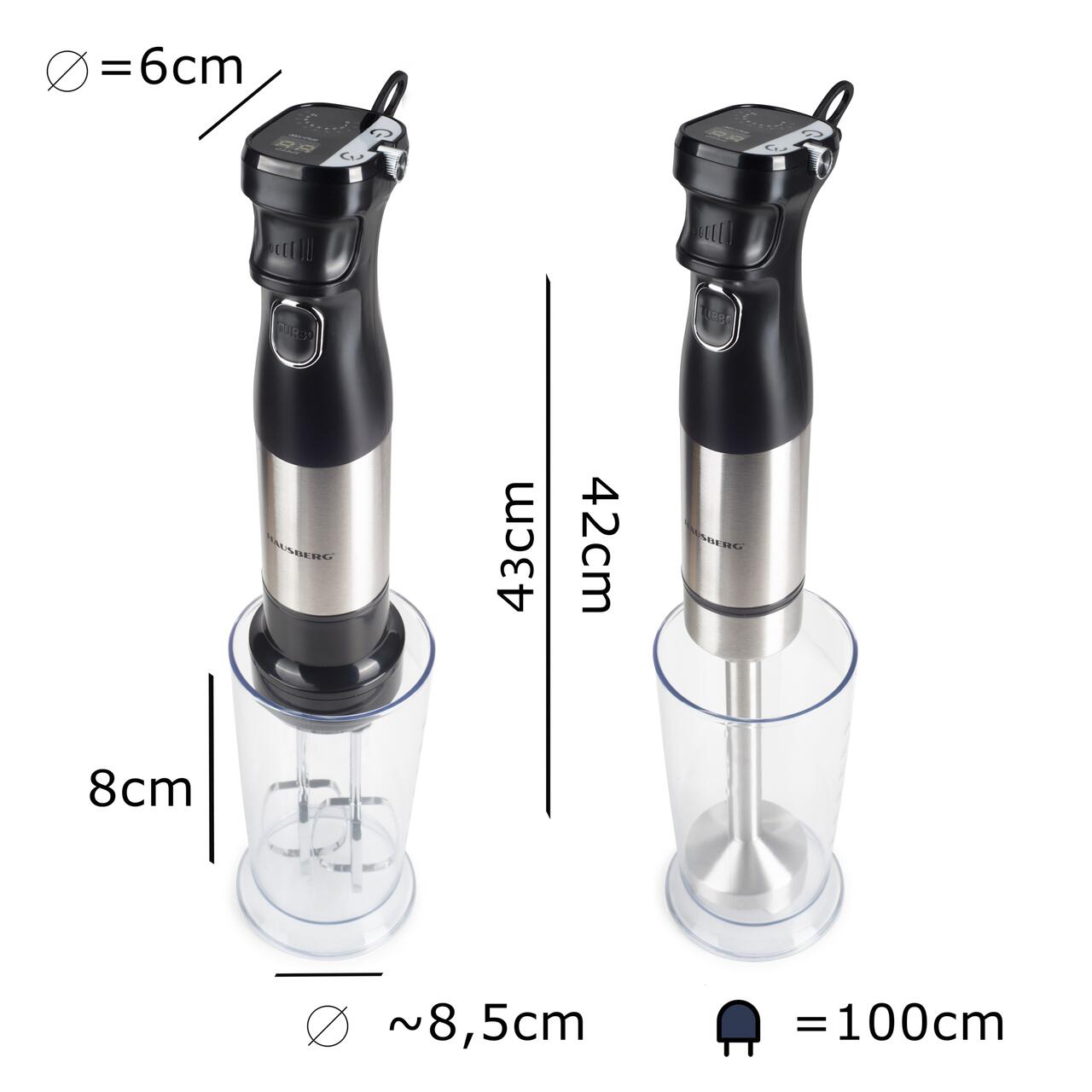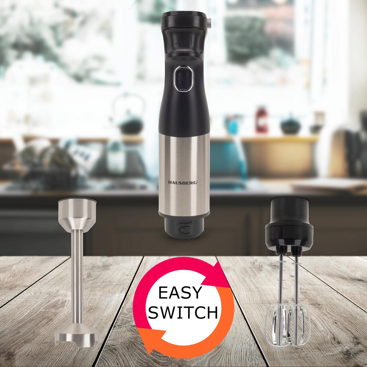 2 в 1 HAUSBERG HB-7704IN Блендер с мощност 1000 W, професионален вертикален миксер, 10 настройки за скорост и турбо функция, вместимост на чашата 700 мл, многофункционален, черен Блендерът ...