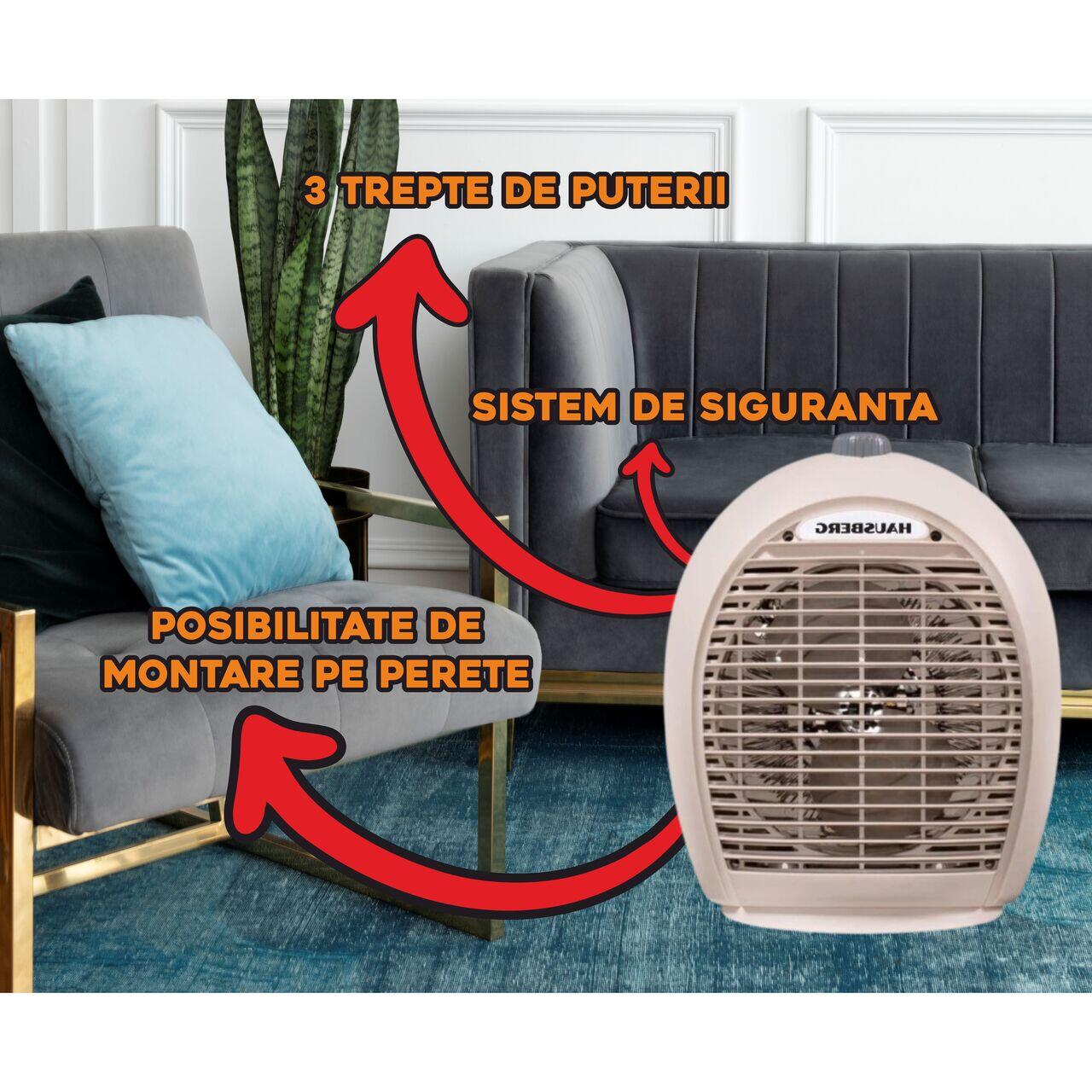 Въздушен нагревател Hausberg HB-8505BJ, 2000 W, 3 степени на мощност, система за безопасност, Бежов
