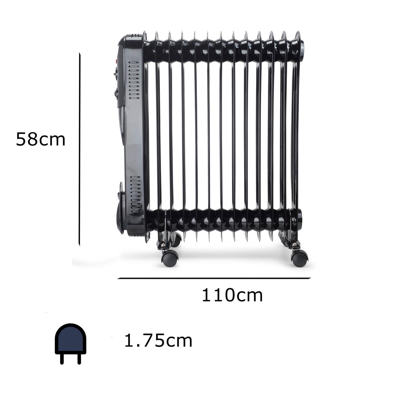 Електрически нафтов нагревател HAUSBERG HB-8935, 3 степени, 1000-1500-2500 W, 13 елемента 110 мм х 580 мм, регулируем термостат, дръжка и колела за лесно преместване, светлинен индикатор за работа, черен