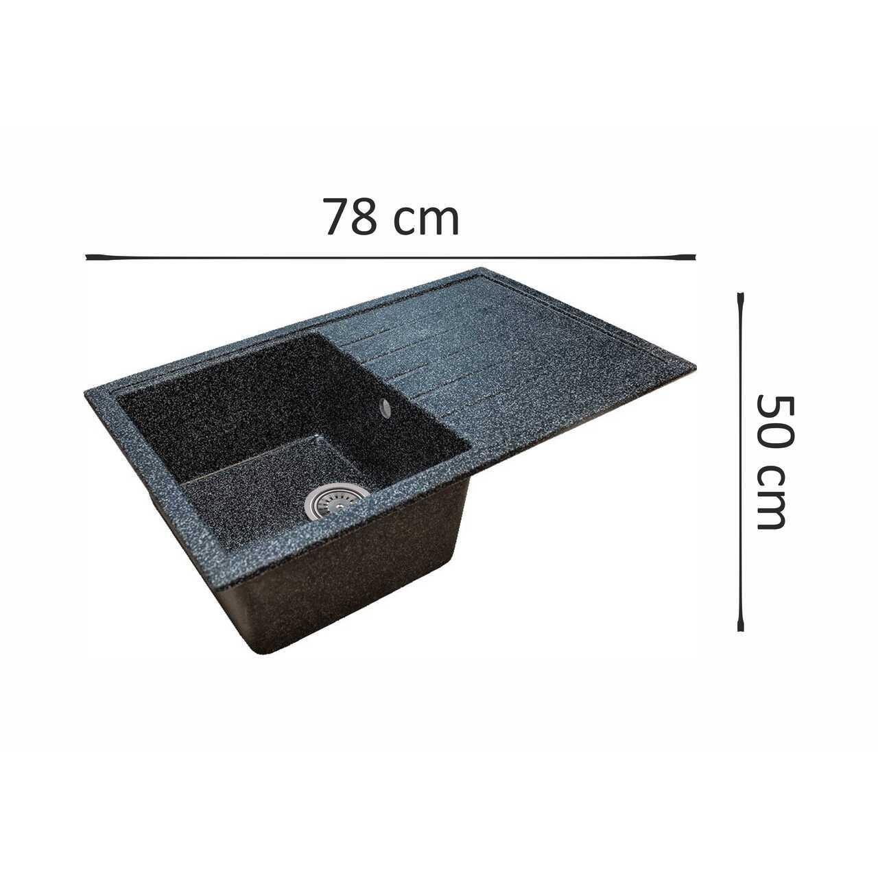Кухненска мивка Sanitec Elmy SN9035ST-NG, гранит-композит, черна, 1 ляво корито, 78 x 50 см
