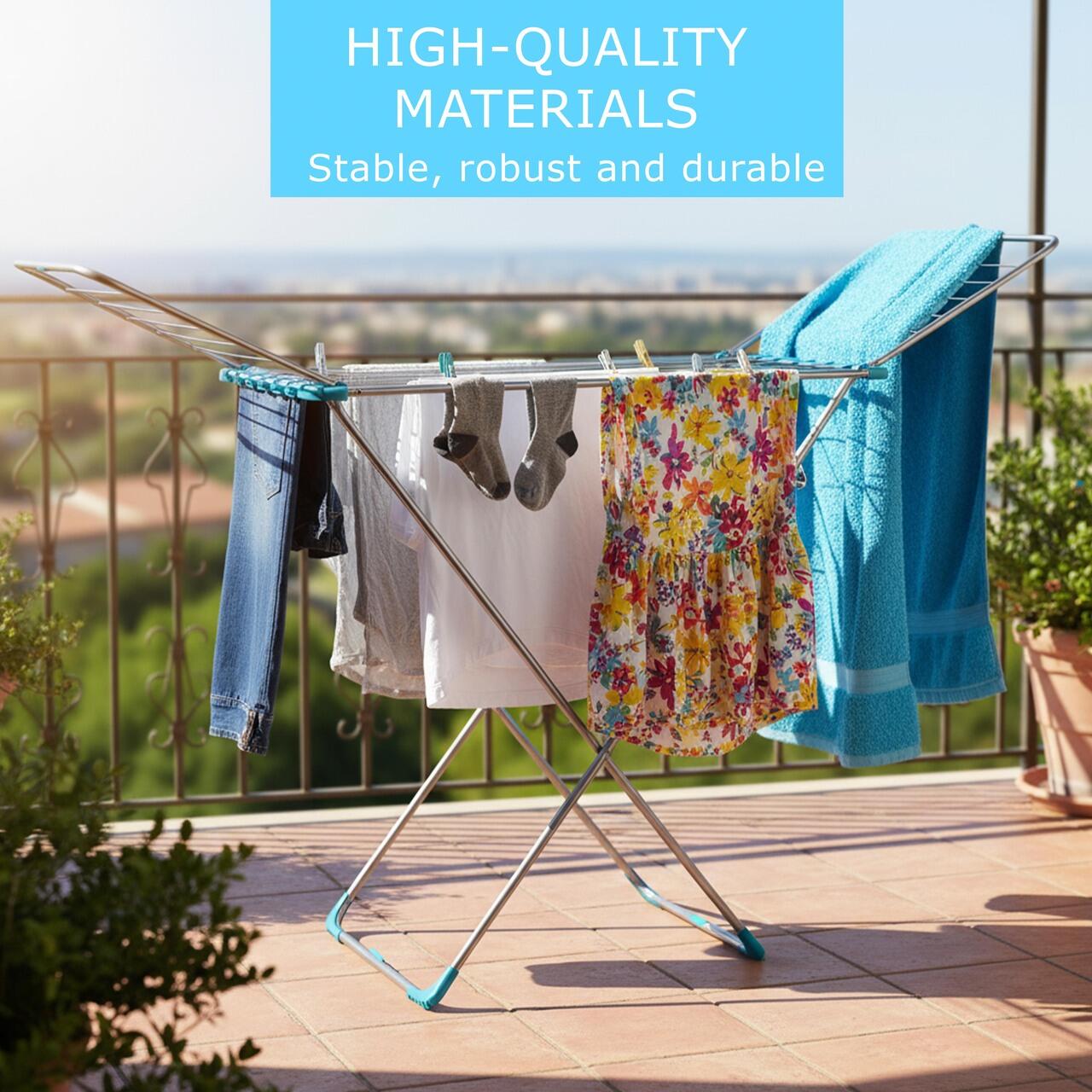 Класическа сушилня за дрехи, с Х-образни крака, сгъваема, Електростатично полево боядисване с антикорозионна обработка, Капацитет на сушене 18 м.