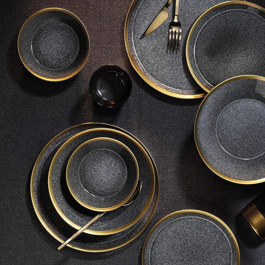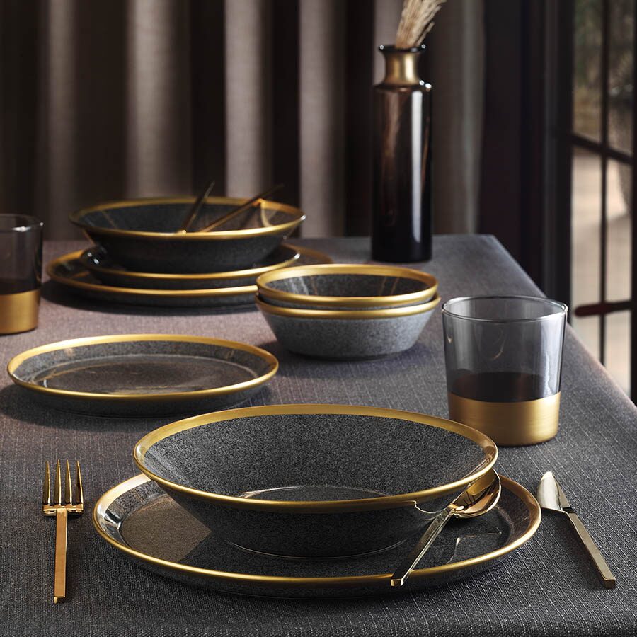 Сервиз за маса FORZA, 24 части, 6 души, порцелан, черно със злато, порцелан kutahya Сервиз за маса FORZA от Kutahya Porcelain, съставен от 24 части за 6 души...