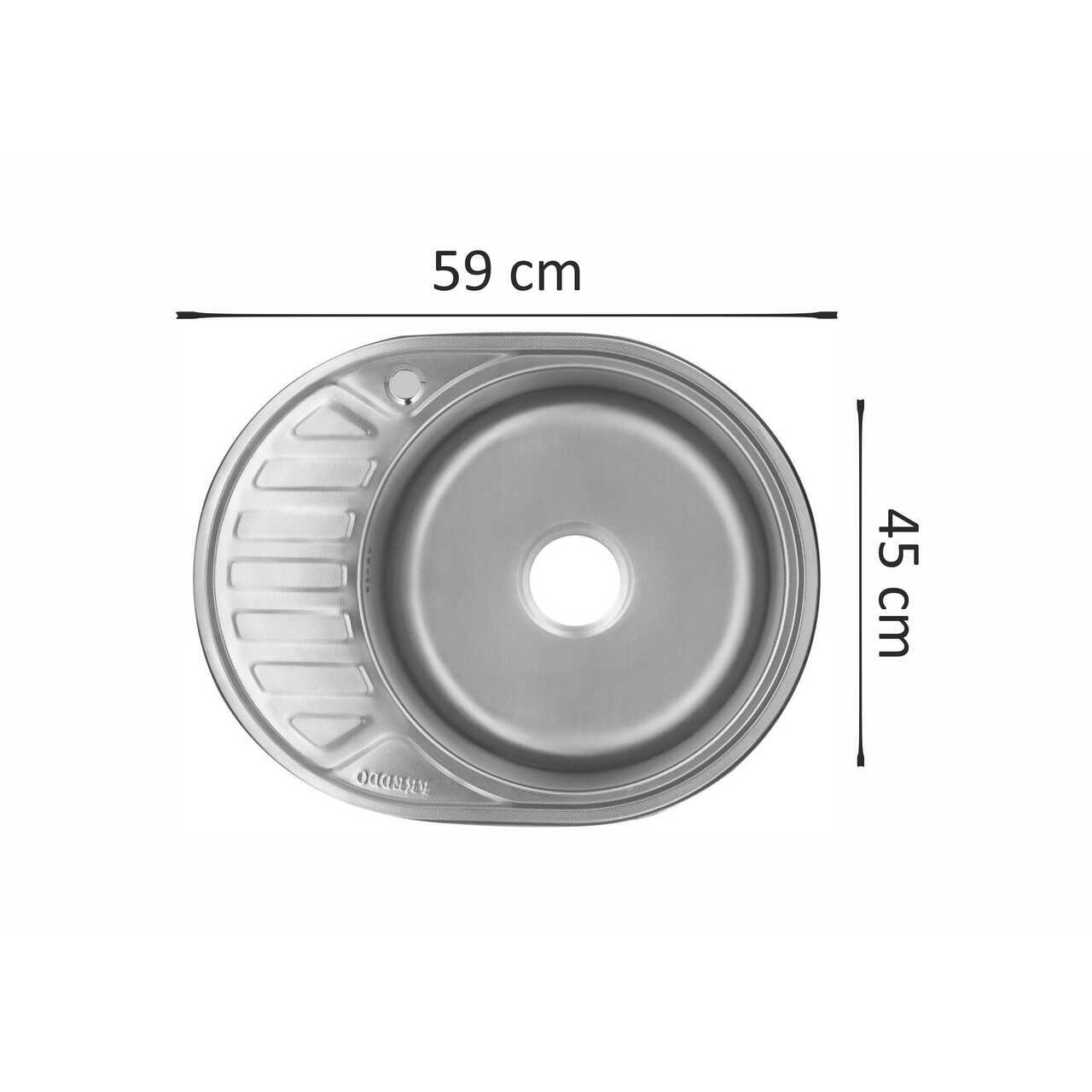 Кухненската мивка Freddo ERT-SN 9006D е вграден модел, изработен от неръждаема стомана с покритие против варовик . Неръждаемата стомана, от която е направена, позволява лесно почистване и предлага на вашата кухня така желаната хигиена. Той има кръгъл резервоар, разположен вдясно с дълбочина 18 cm . Мивката съдържа капка , така че е идеална за аксесоари със стелажи. Отворът за закрепване на батерията е разположен от лявата страна на мивката за най-ефективно използване.