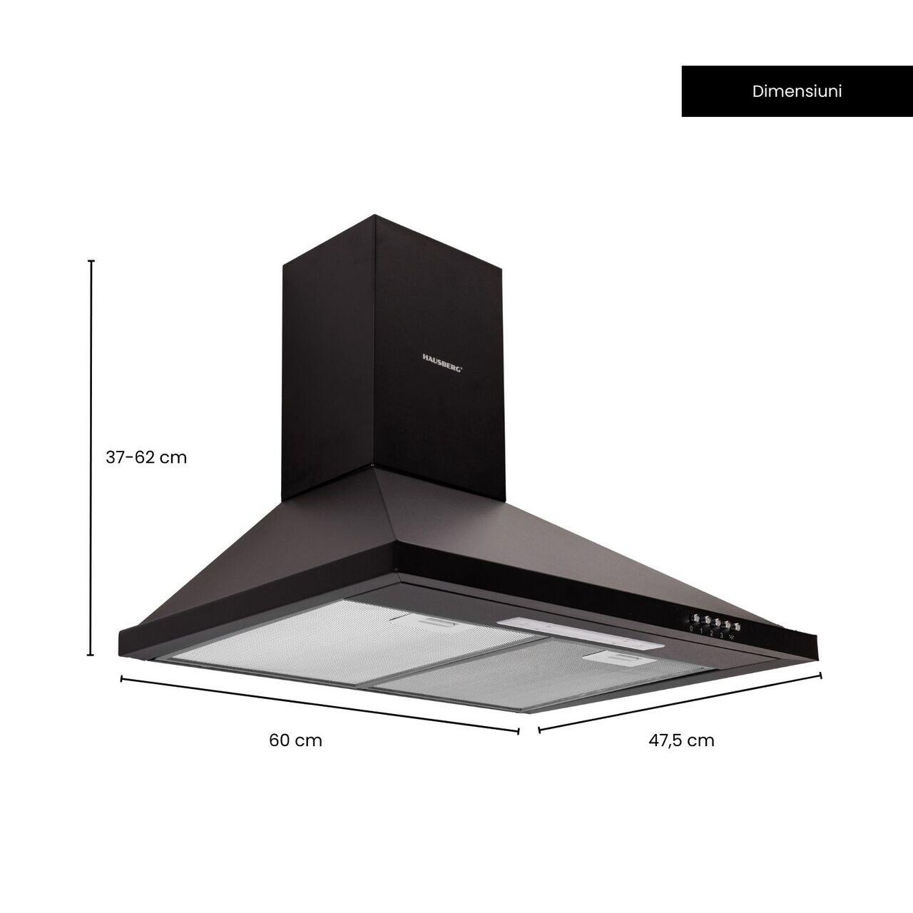 Декоративен аспиратор за вграждане Hausberg HB-1260NG, Всмукателна мощност 400 m3/h, 1 мотор, 60 см, Черен