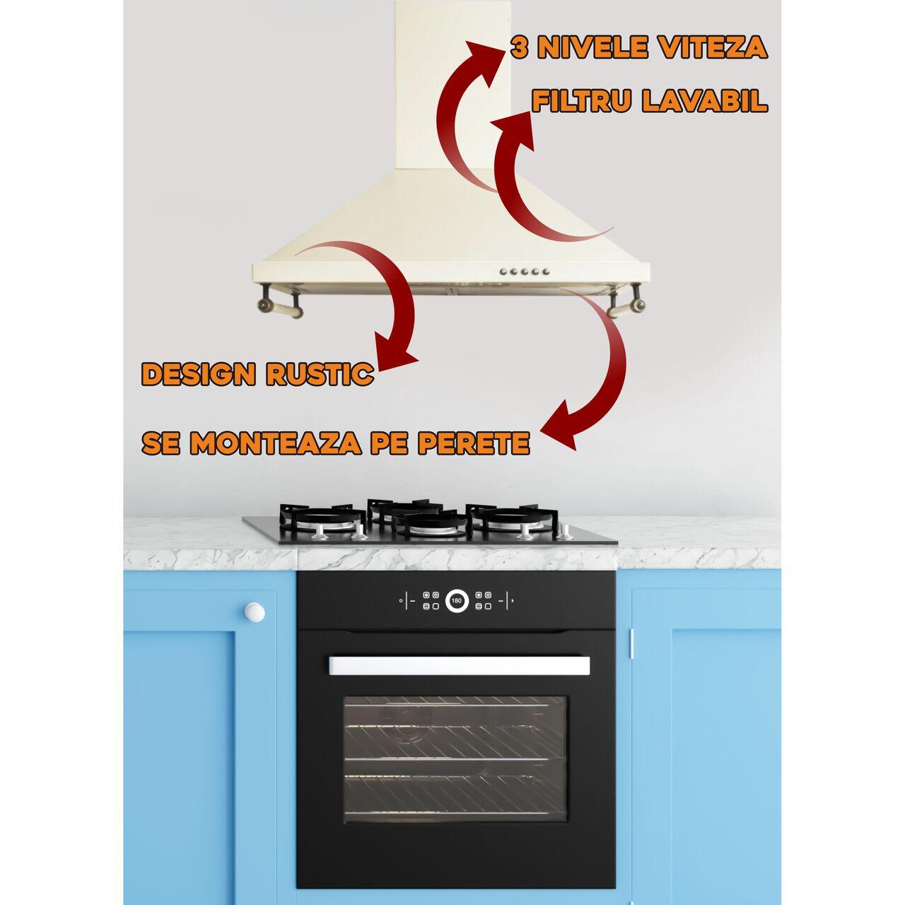 Hausberg HB-1500 е декоративен аспиратор, който създава приятна атмосфера както с елегантността на дизайна, така и с повишената си ефективност при работа. Цветът BEJ RUSTIC и рустикалните покрития на този аспиратор ще придадат чар на Вашата кухня, като в същото време осигурява оптималната вентилация и свежест на въздуха.