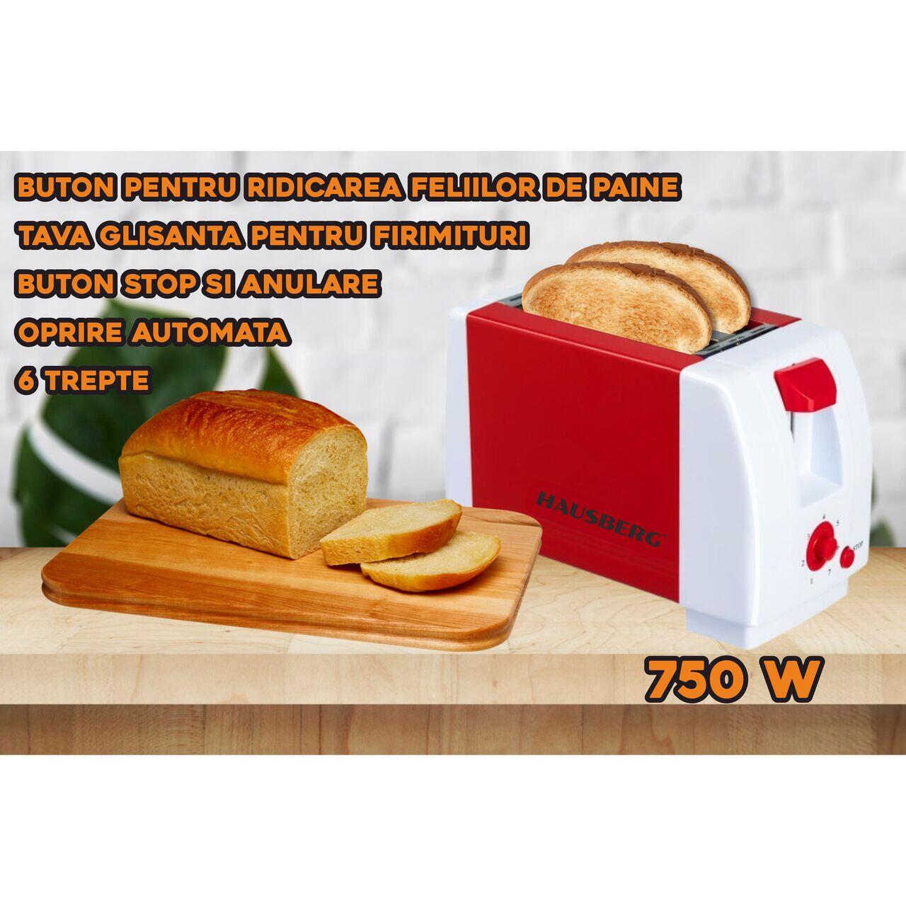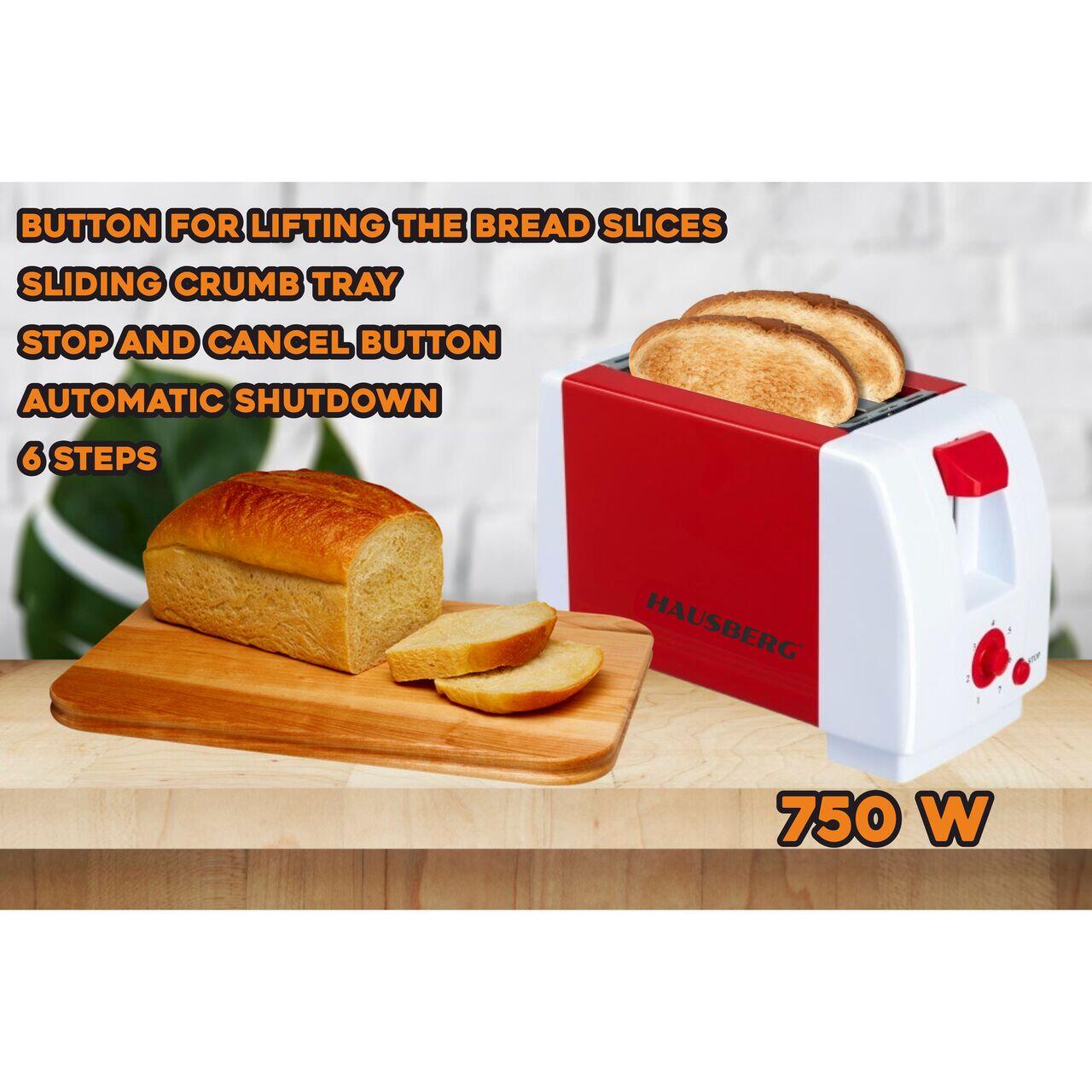 Тостер Hausberg HB-150, Червен / Бял