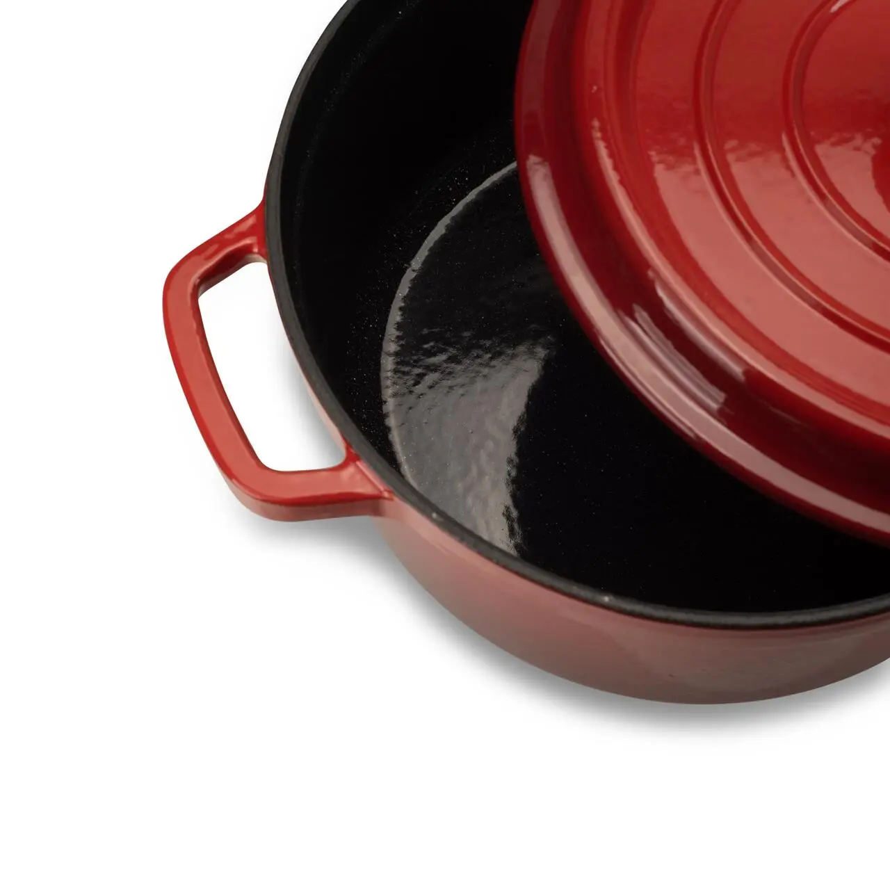 Външната част е завършена с двоен слой червен емайл, осигуряващ защита от износване и елегантен външен вид.