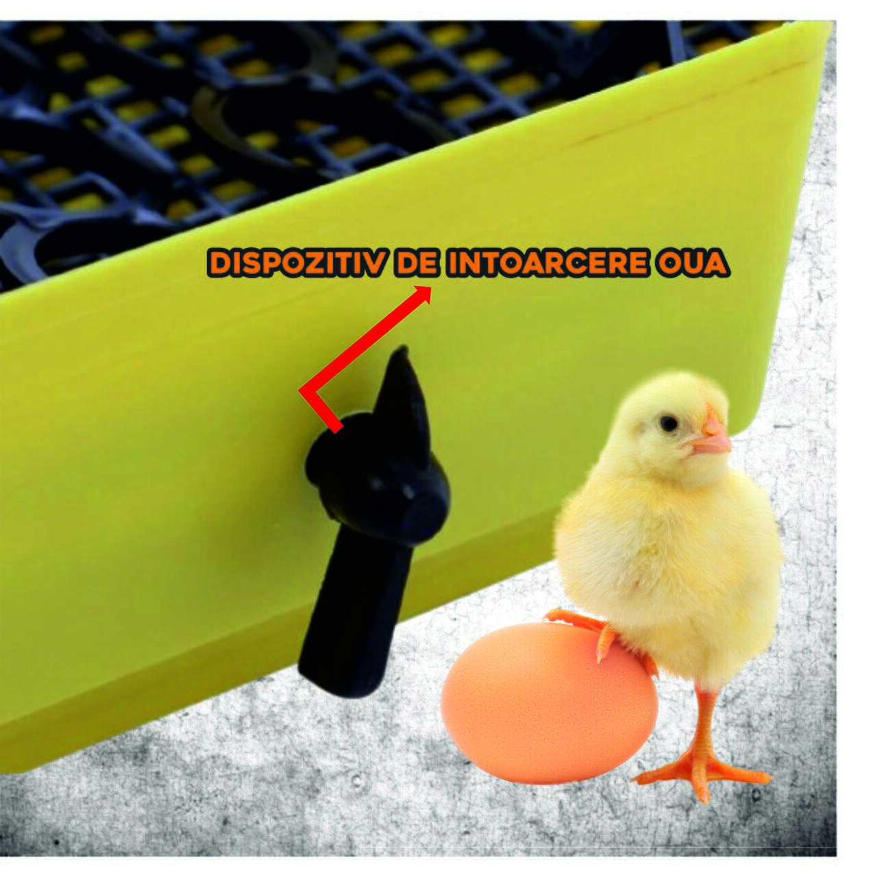 Обръщането на яйцата се извършва с помощта на въртящо устройство и цели изравняване на температурата и влажността по цялата повърхност на яйцето и избягване на залепването на ембриона за черупката.