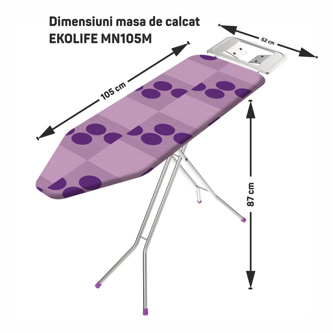 В заключение, дъската за гладене EKOLIFE MN105M е идеално решение за тези, които търсят ефективност, безопасност и комфорт в рутината си за гладене, предлагайки оптимална комбинация от технически характеристики и качествени материали.