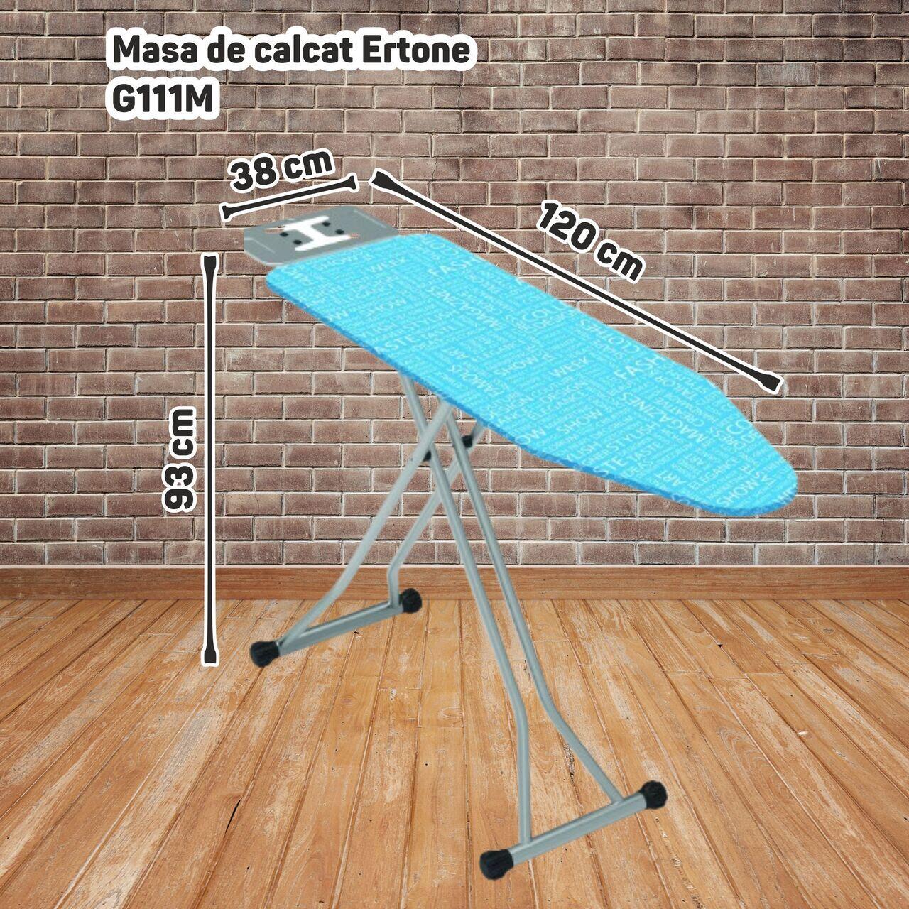 Дъска за гладене Ertone G111M, електростатична боя, покритие от памук и полиестер, стойка за ютия, вграден контакт, 38 x 93 x 120 cm