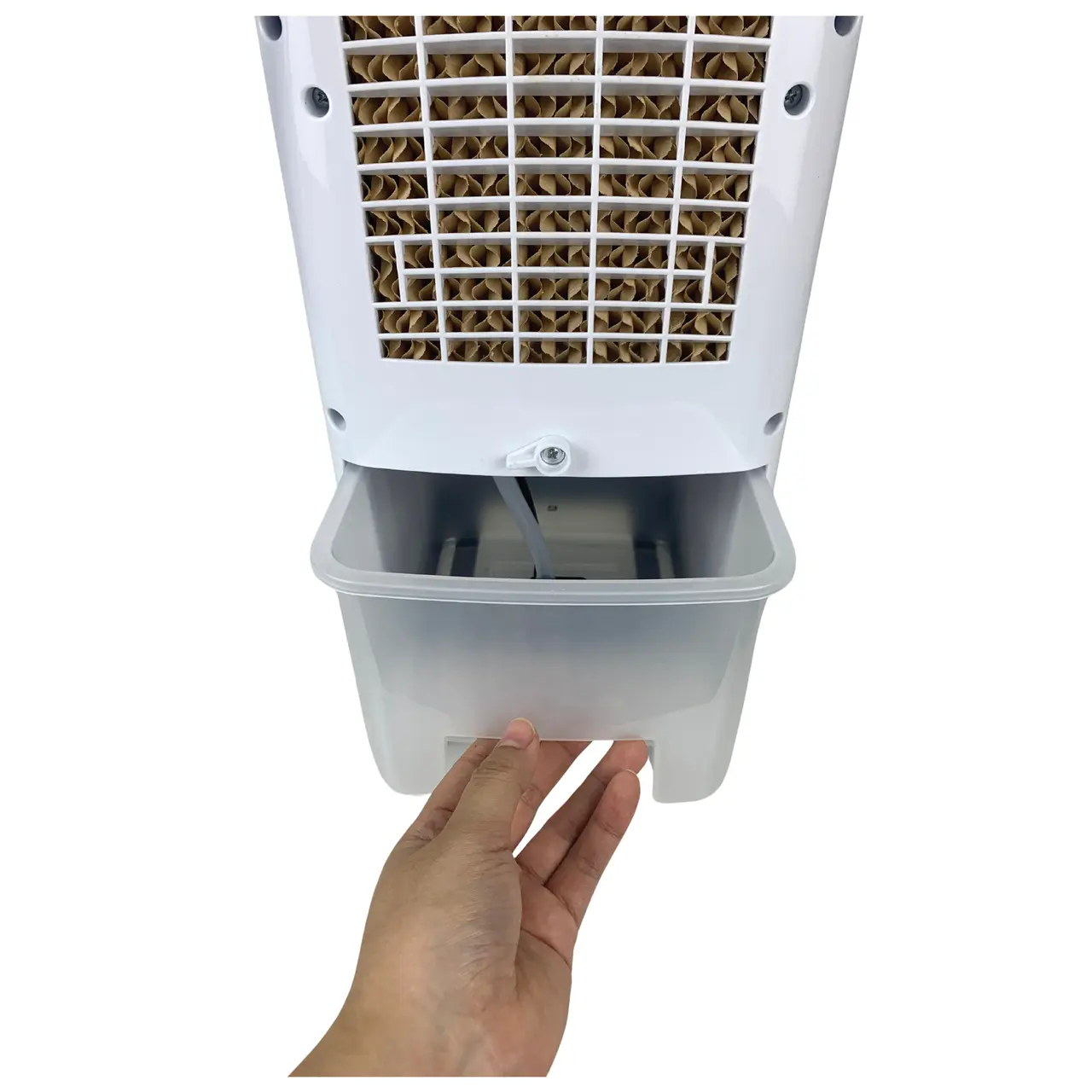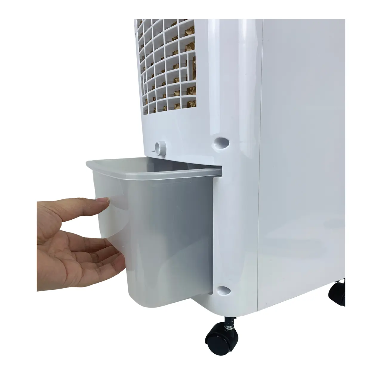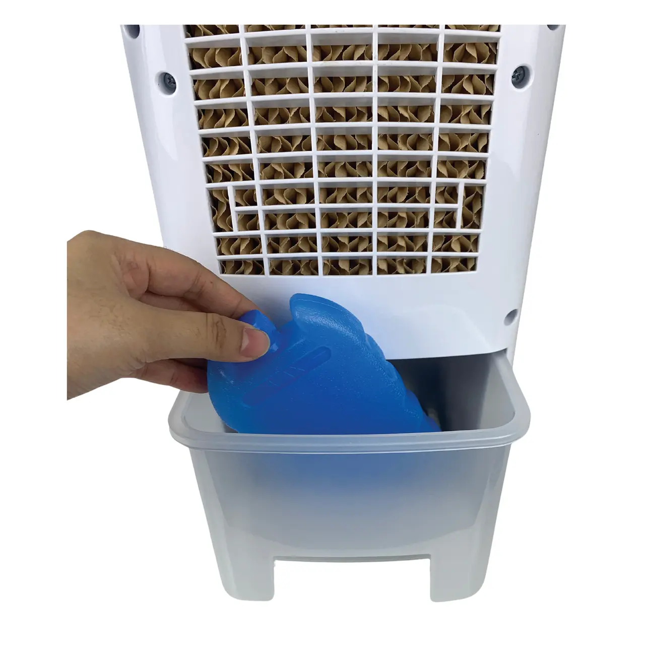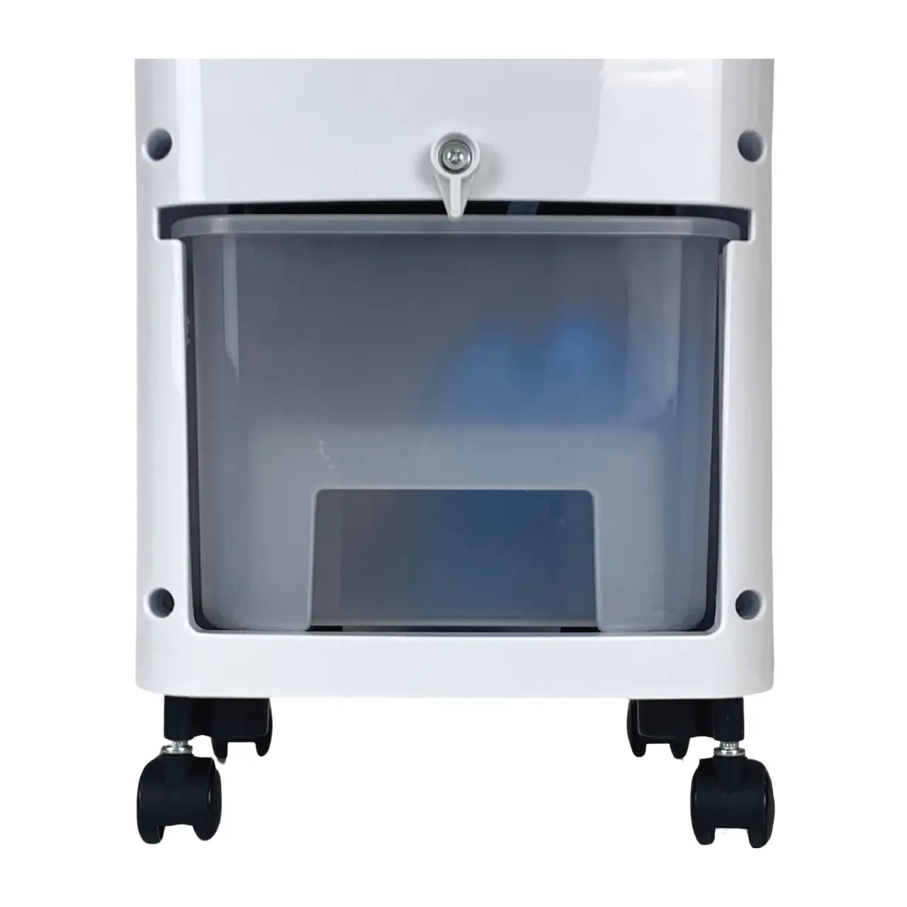 Вентилаторът разполага с видим резервоар за вода с капацитет 4 литра, осигуряващ продължителна работа без необходимост от често зареждане. Консумацията на вода е икономична, варира от 0,5 до 1 литър на час и включва две ледени кутии за засилване на охлаждащия ефект.