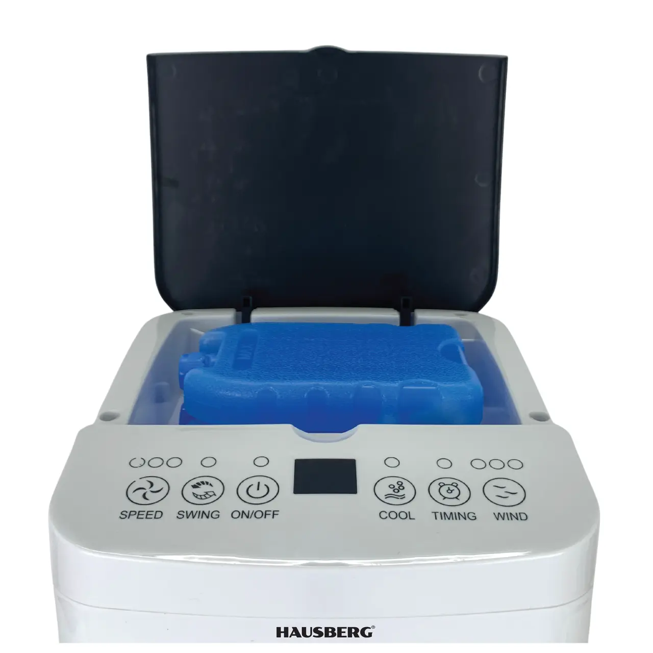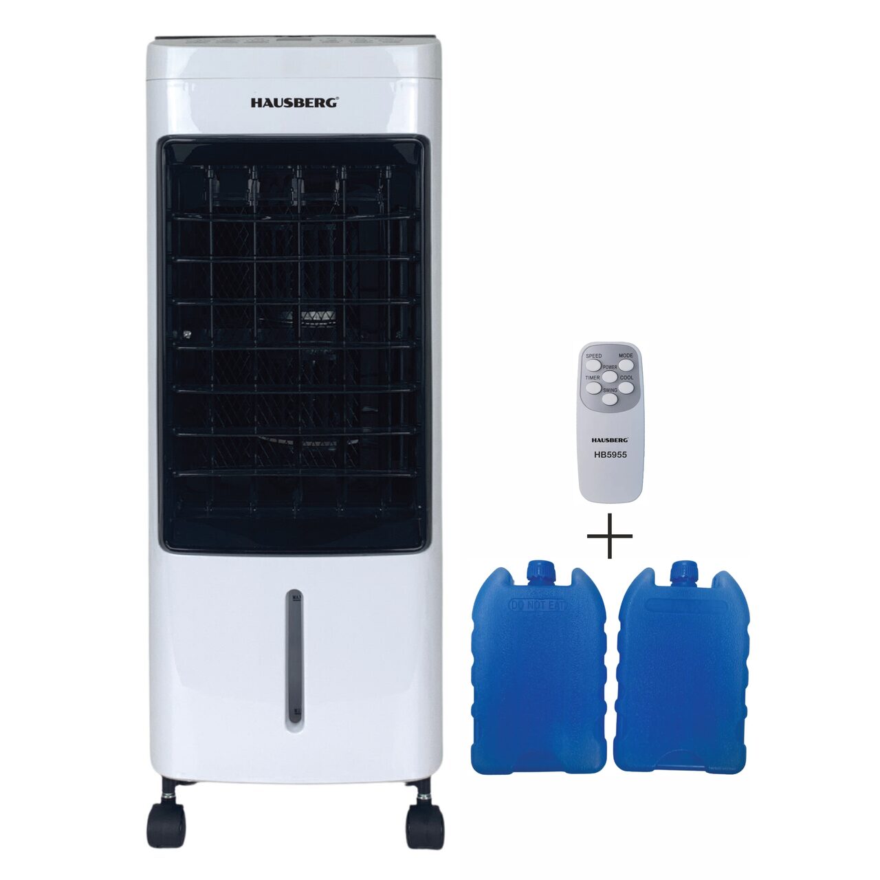 Вентилатор с охлаждане и овлажняване на въздуха HAUSBERG HB-5955, 3 скорости, дистанционно управление, 12 часов таймер, 4 л резервоар за вода, преносим, Бял