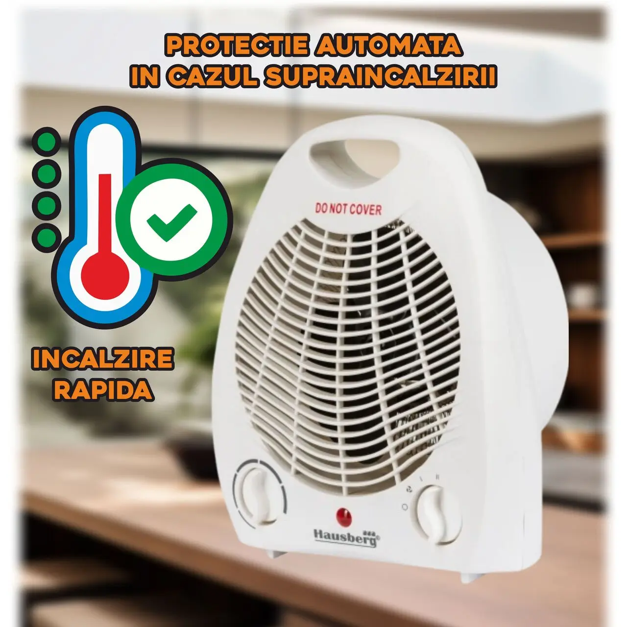 🌡️ 2 trepte de încălzire + termostat reglabil – control personalizat al temperaturii.