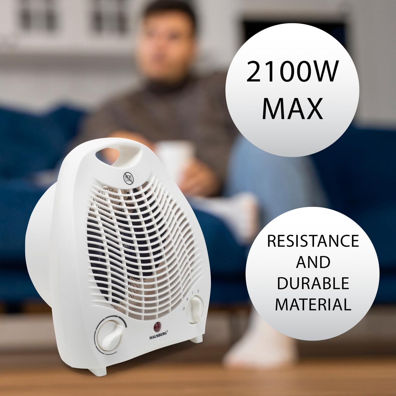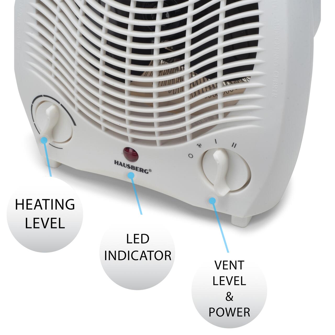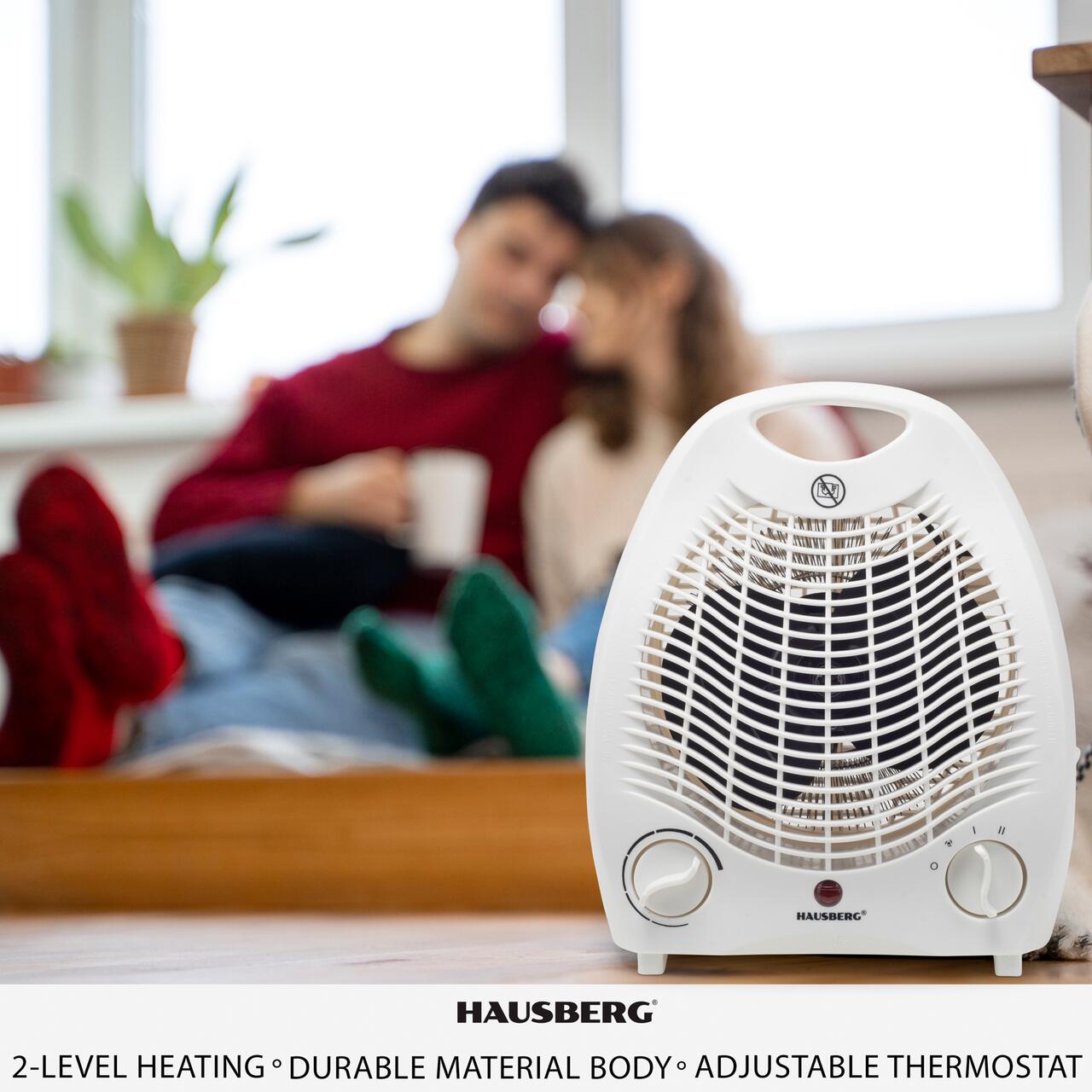 Aeroterma Hausberg HB-8501AB, 2000 W, 2 trepte de putere, termostat reglabil, Alb