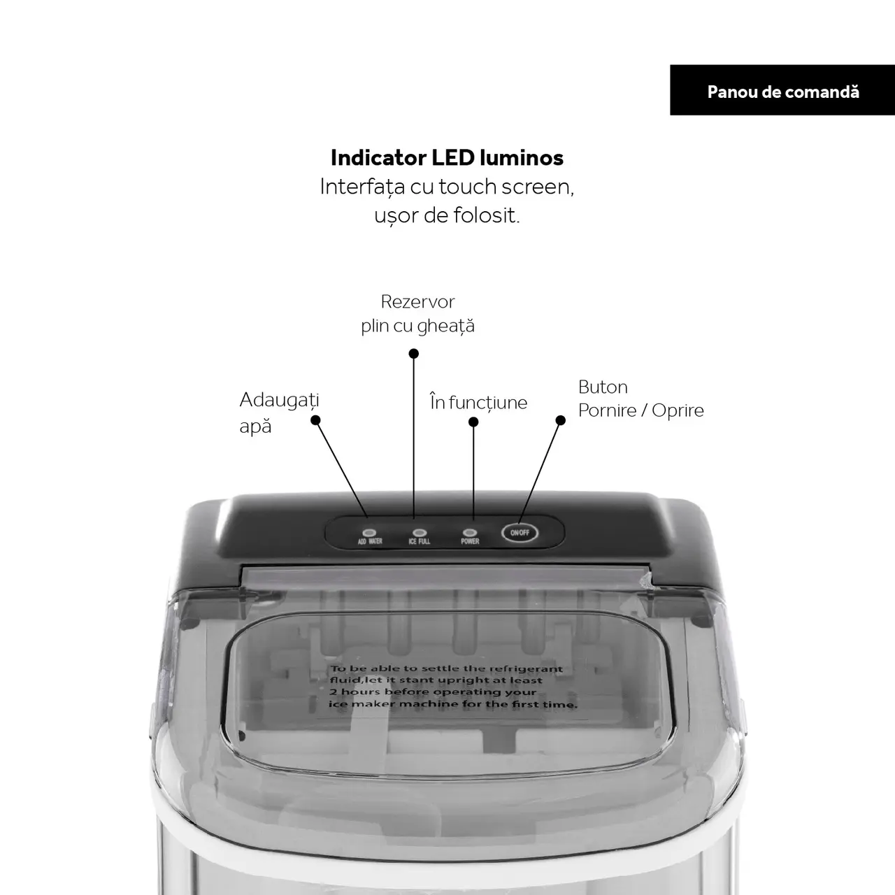 🧊 Capacitate mare: 12-15 kg/24h, coș de gheață de 0.6L