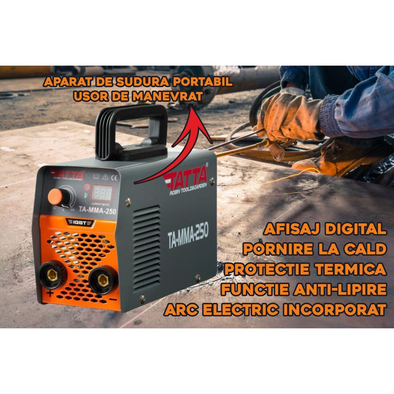 Aparat de sudura Tatta TA-MMA-250, putere absorbita 9.5 kVA, eficienta 85%, electrod 1.6-3.2 mm