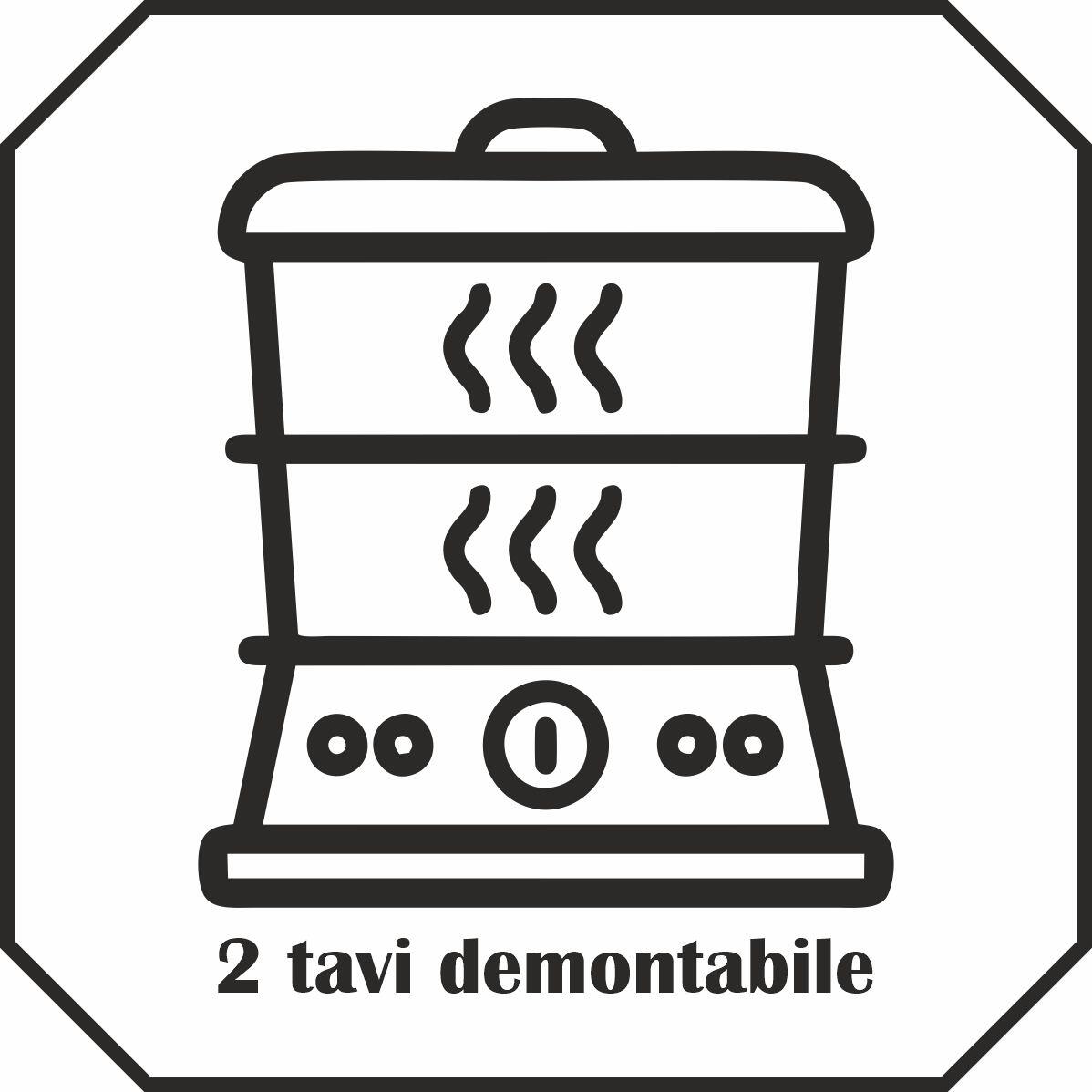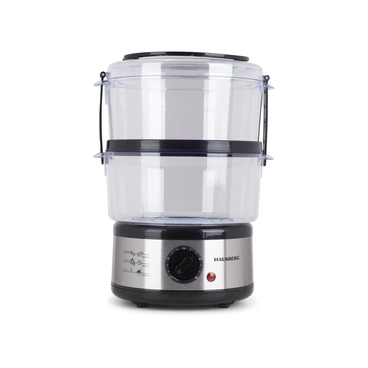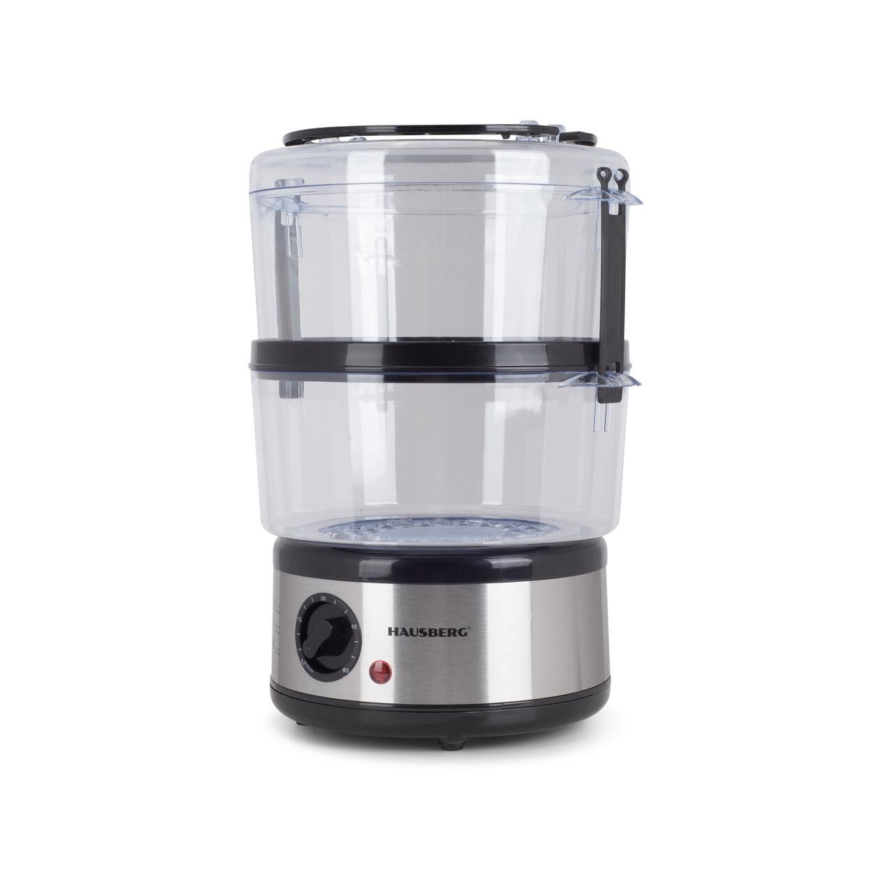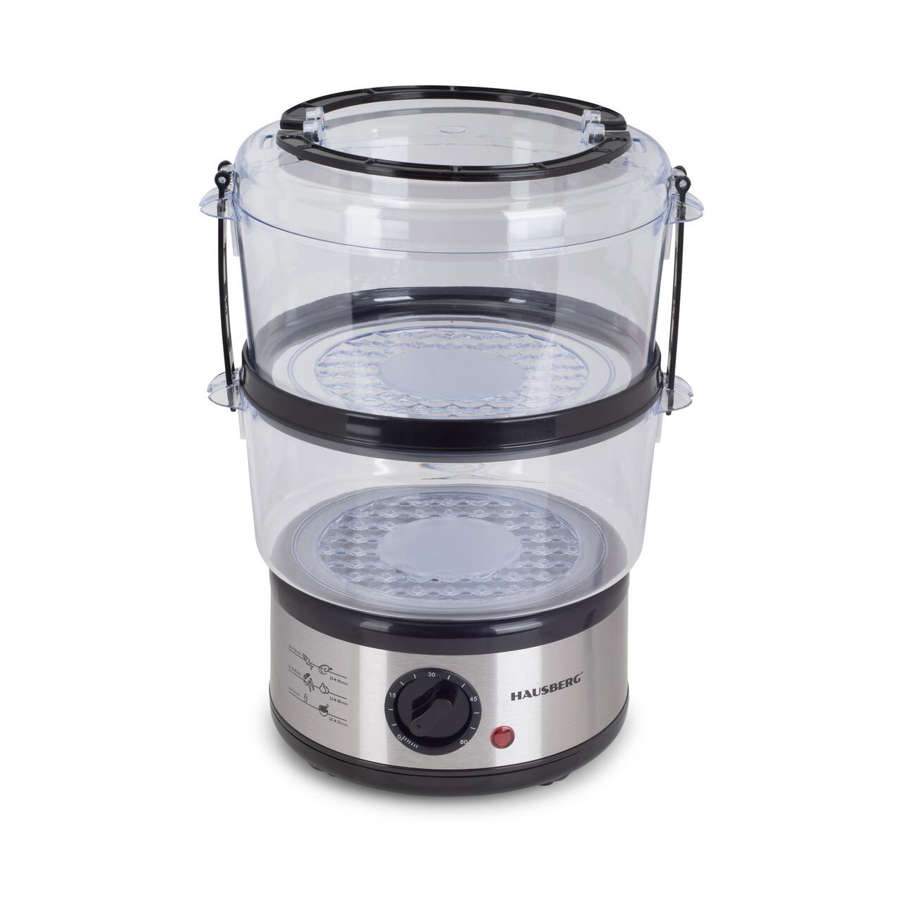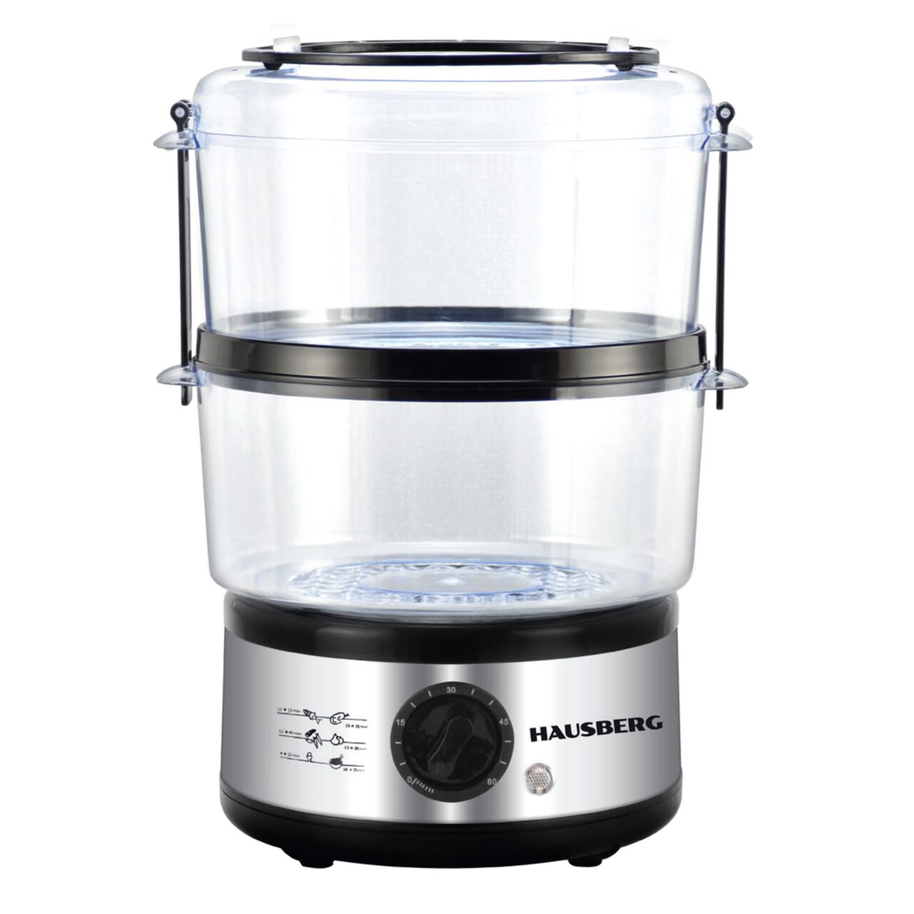 Aparat de gătit cu aburi Hausberg HB-1350, 2 nivele, 4.8L, 400W, Timer 60 min, Inox/Plastic
