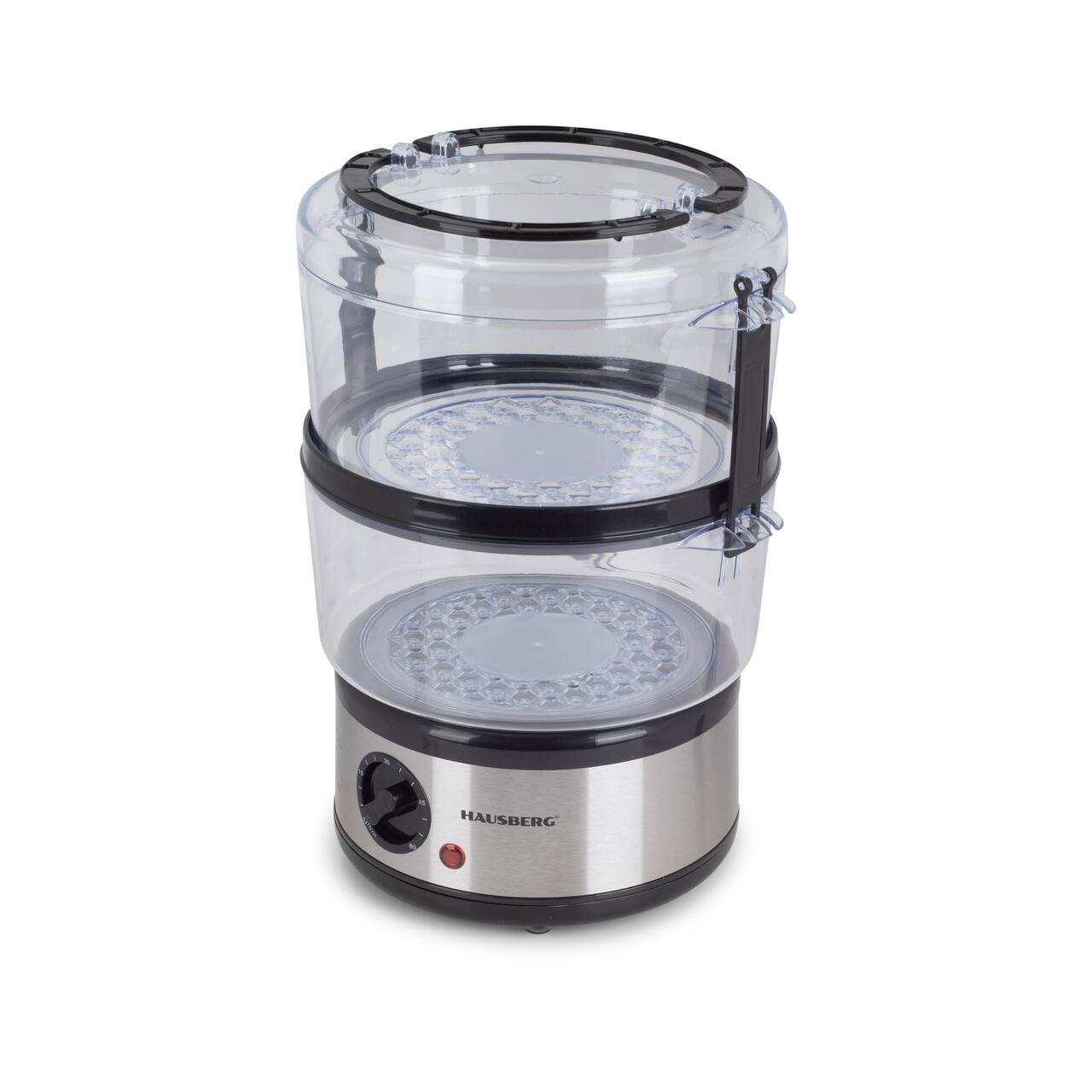 Aparat de gatit cu aburi Hausberg, HB1350, 400 W, 2 nivele, capacitate 4,8l, Argintiu