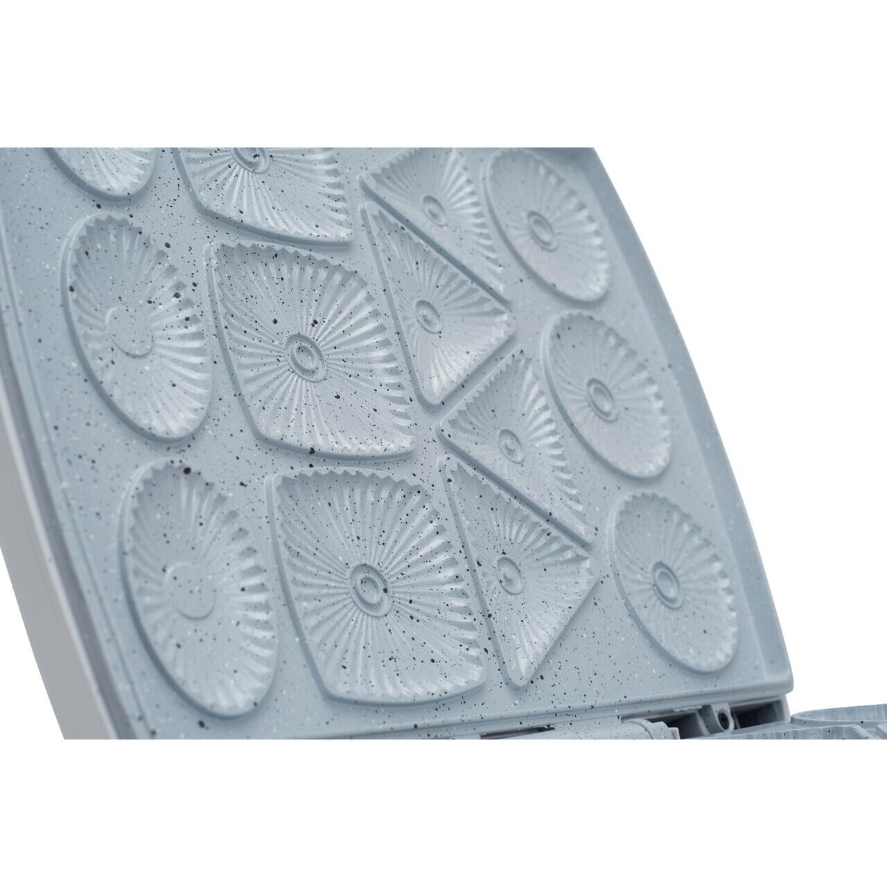 Plăcile antiaderente împiedică lipirea aluatului, iar carcasa rezistentă la temperaturi ridicate îți garantează siguranță în utilizare. Designul său modern și posibilitatea de depozitare pe verticală îl fac ușor de integrat în orice bucătărie.