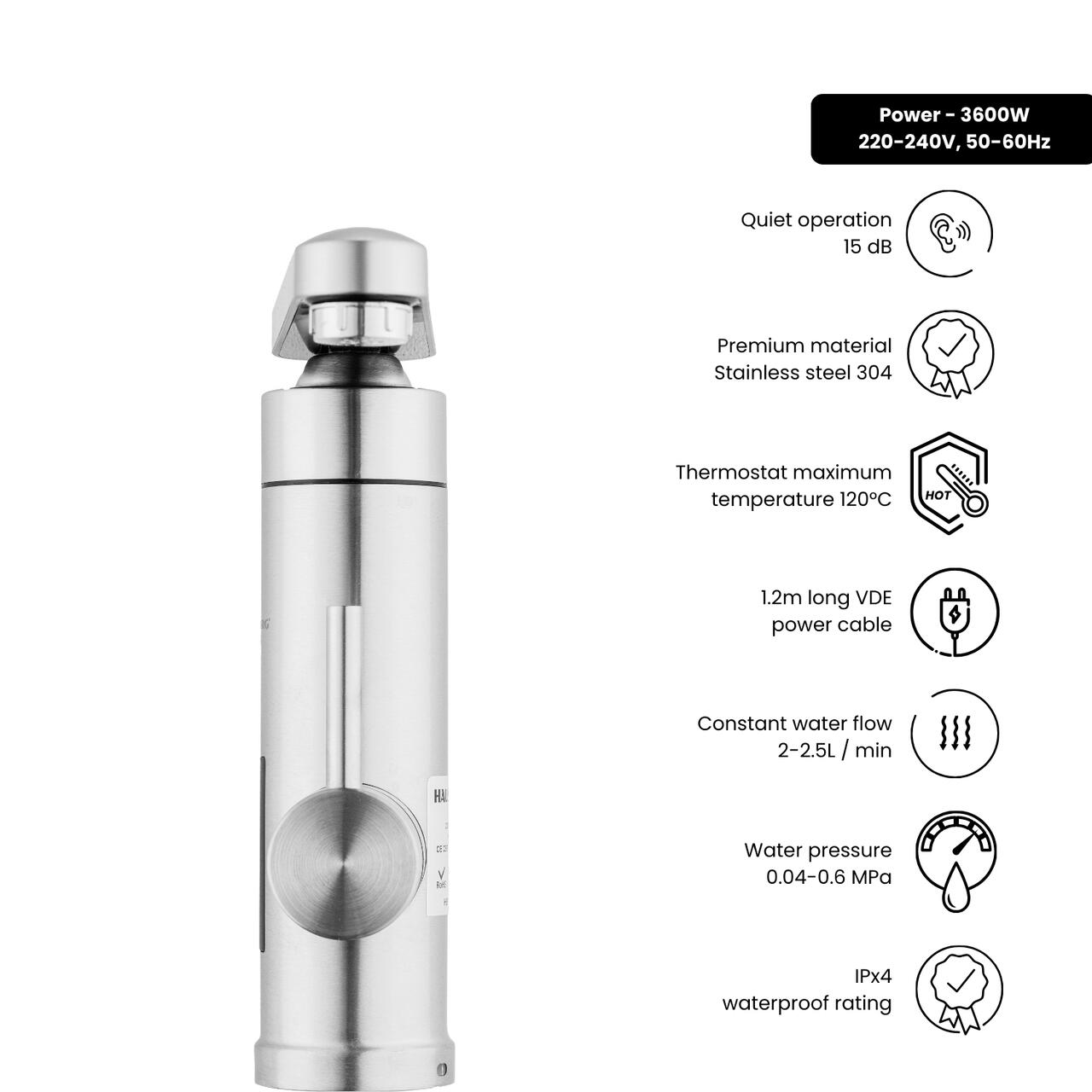 Baterie bucatarie instant electrica HAUSBERG HB-F5011, 3600W, afisaj temperatura LED, montare chiuveta, IPx4
