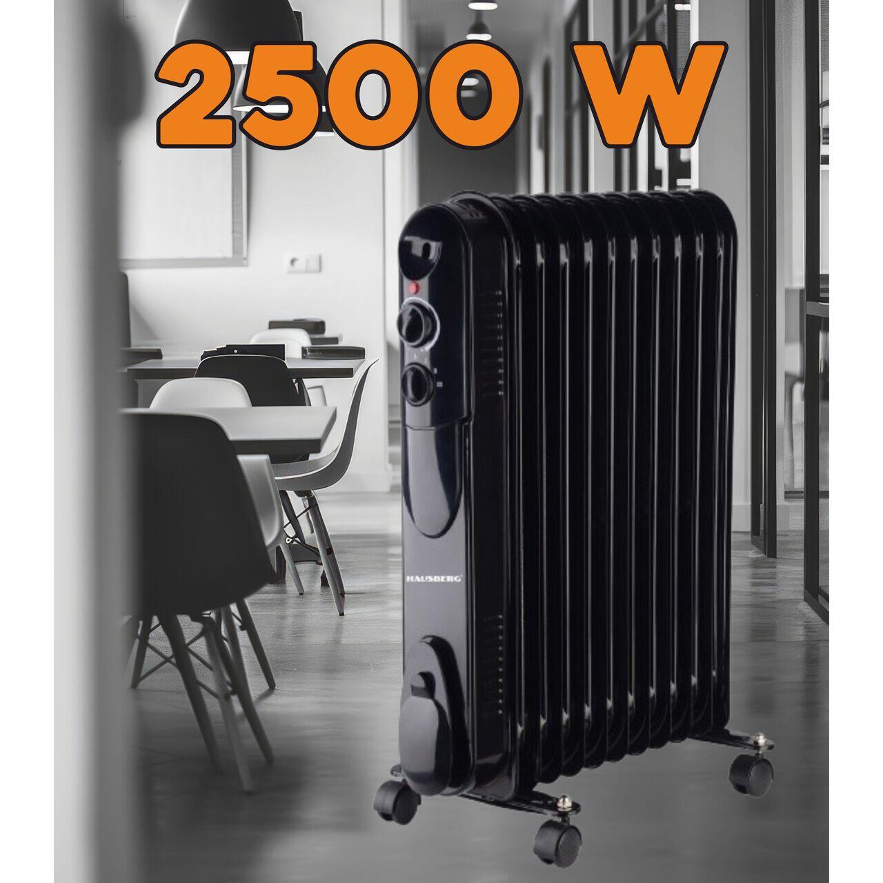 Calorifer electric cu ulei HAUSBERG HB-8925, 2500W, 11 elementi, 3 trepte, termostat reglabil, negru