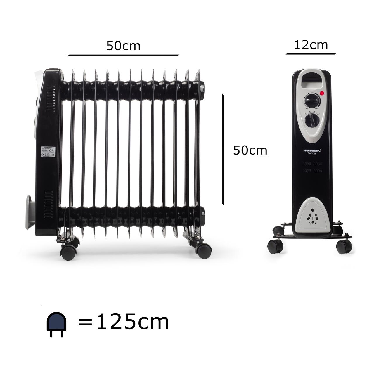Calorifer electric cu ulei Hausberg HB-8913NG, 2500 W, 13 elementi, termostat reglabil, protecție la supraîncălzire și anti-răsturnare, mobilitate cu roți