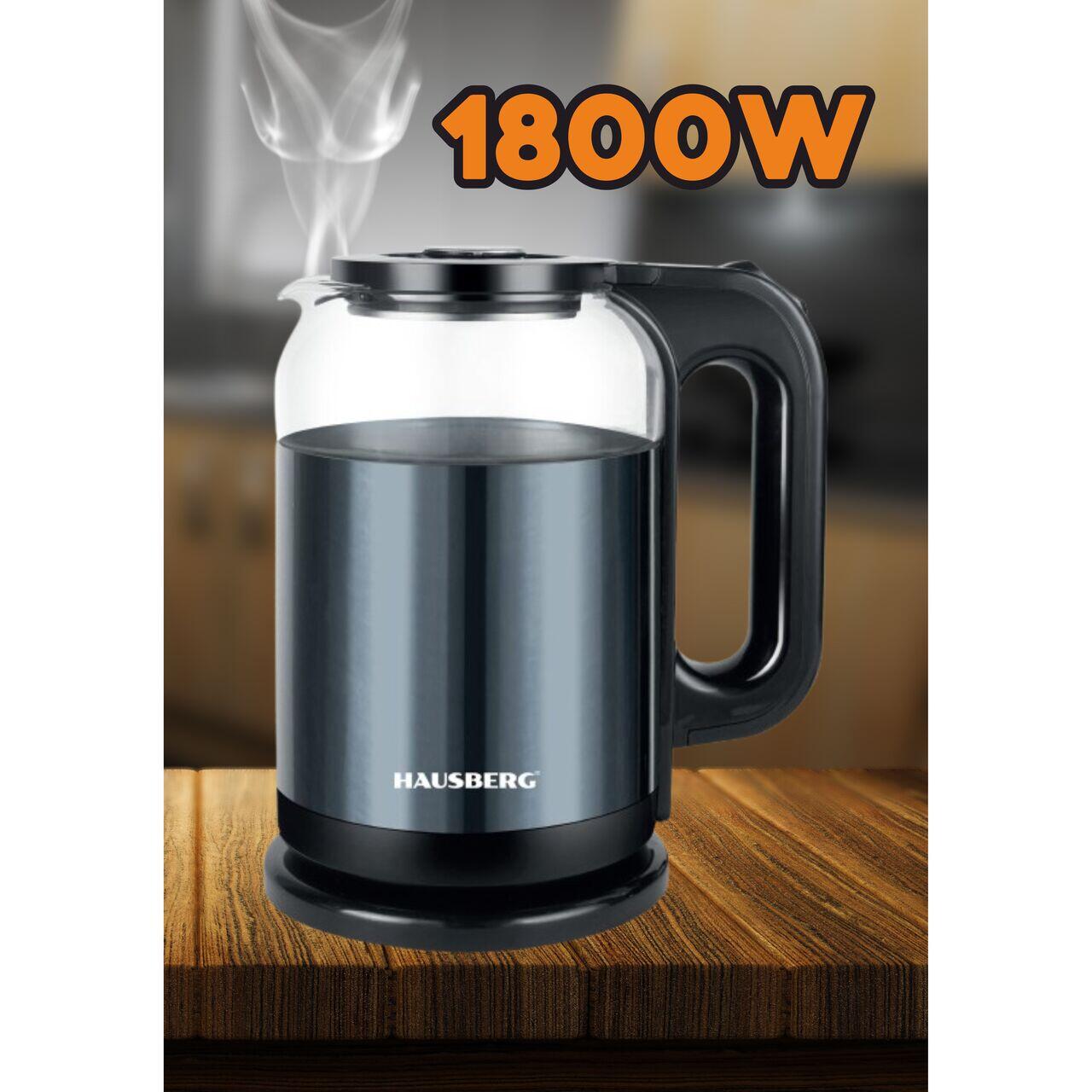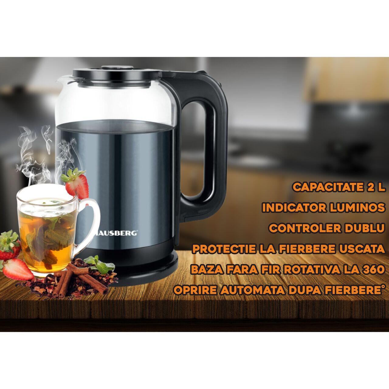 Cana electrica fierbator HAUSBERG HB-3622BL, 1500 - 1800W, capacitate 2L, oprire automata, indicator luminos, Bleu-Negru
