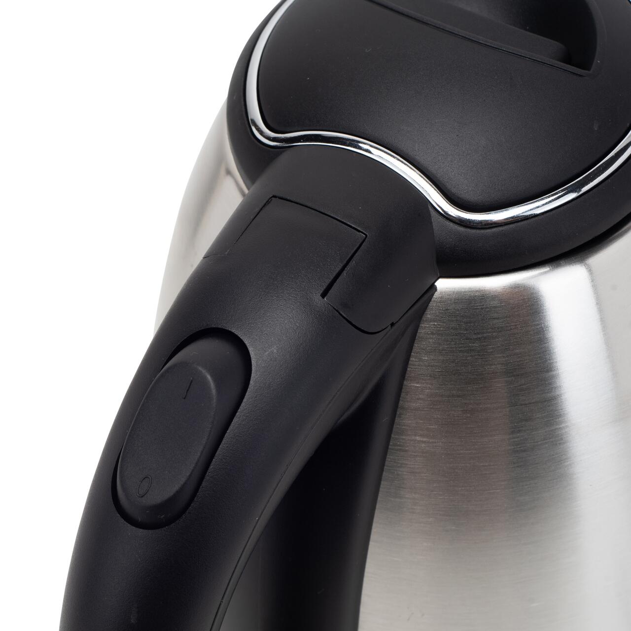 Carcasa din oțel inoxidabil nu doar că îi conferă un aspect elegant, dar asigură și rezistență sporită în timp. Baza rotativă la 360° permite așezarea și ridicarea fierbătorului din orice unghi, iar mânerul ergonomic din plastic rezistent la temperaturi ridicate garantează o prindere sigură și confortabilă.