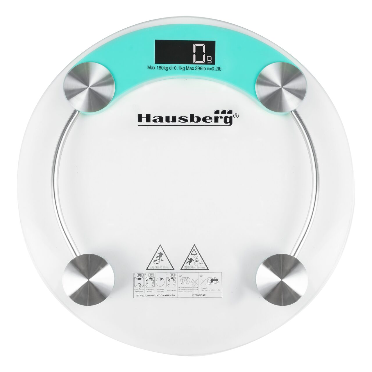 Cantar corporal HAUSBERG HB-6000BL, display LCD, inchidere automata, indicator baterie, 180 kg, Sticla transaparenta, Bleu