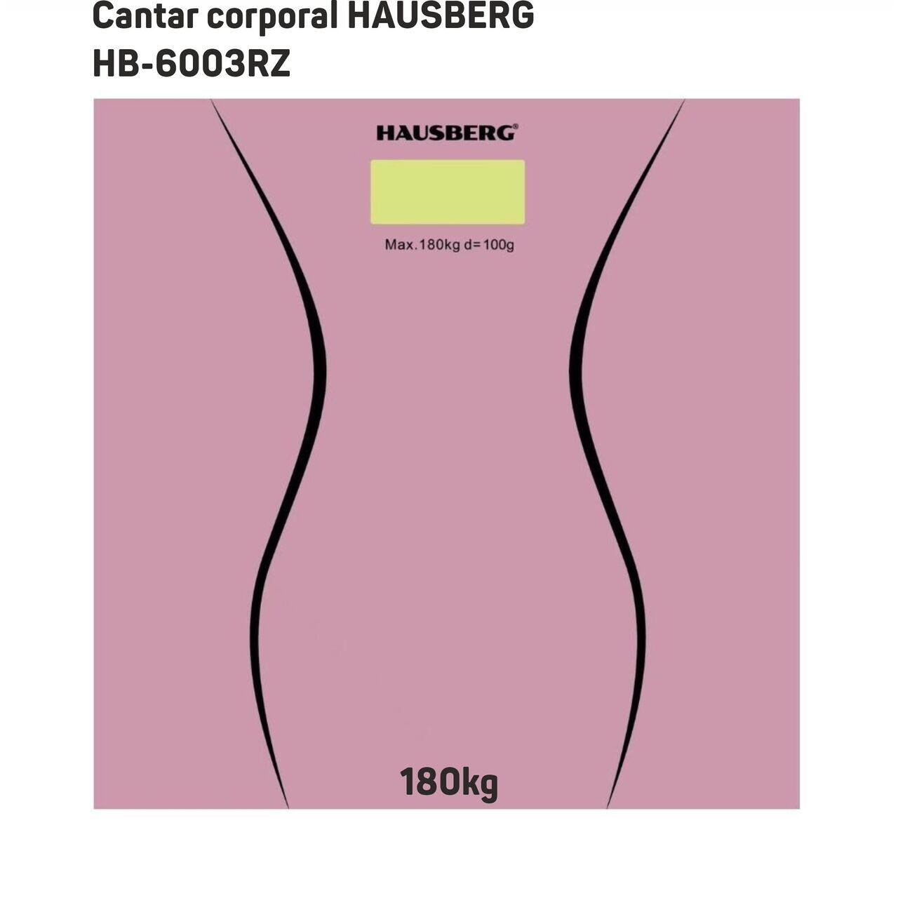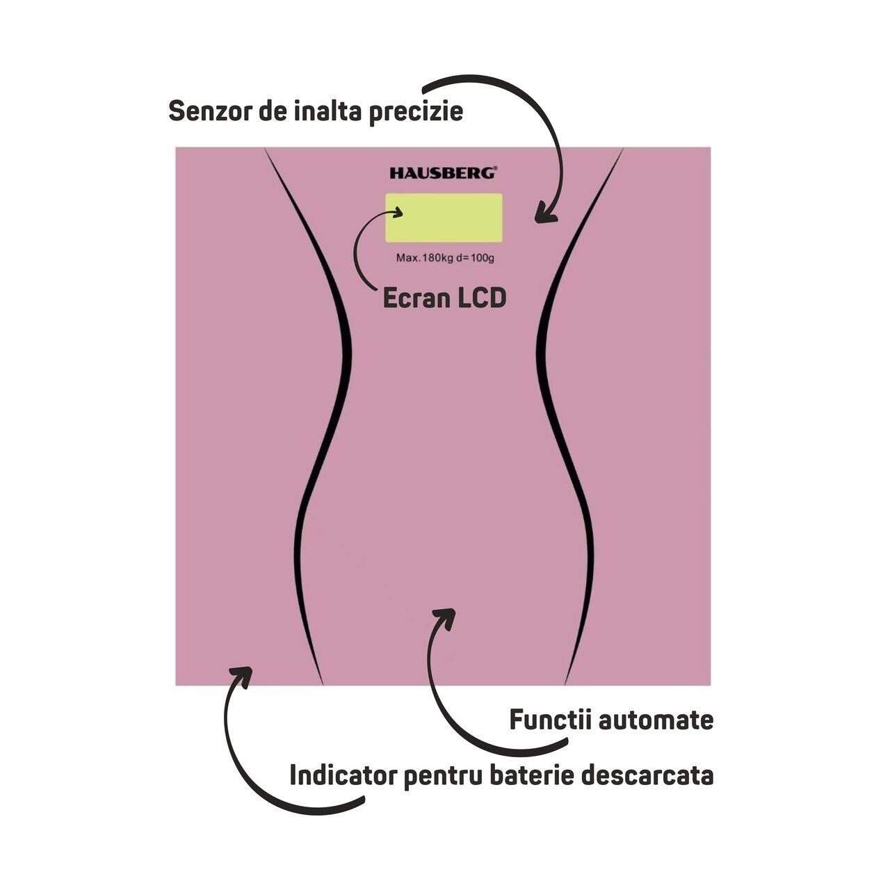 Cantar corporal HAUSBERG HB-6003RZ, 180kg, baterie cu litiu 3v, 30x30cm, Roz