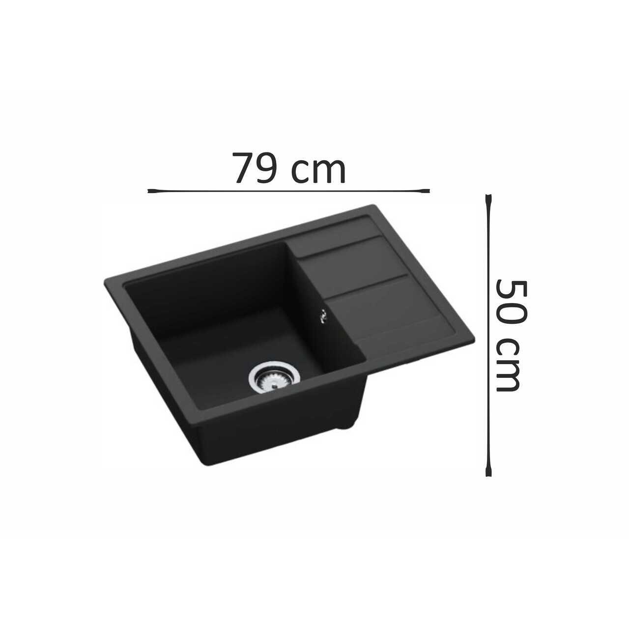 Chiuveta bucatarie Hausberg Delia HBC-9901, compozit, negru, 79 x 50 cm