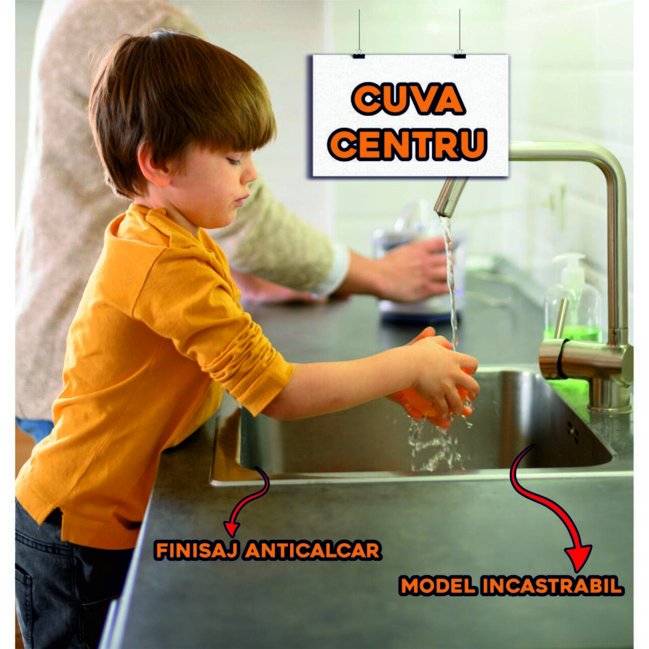 - Finisaj anticalcar, care menține chiuveta curată și ușor de întreținut.