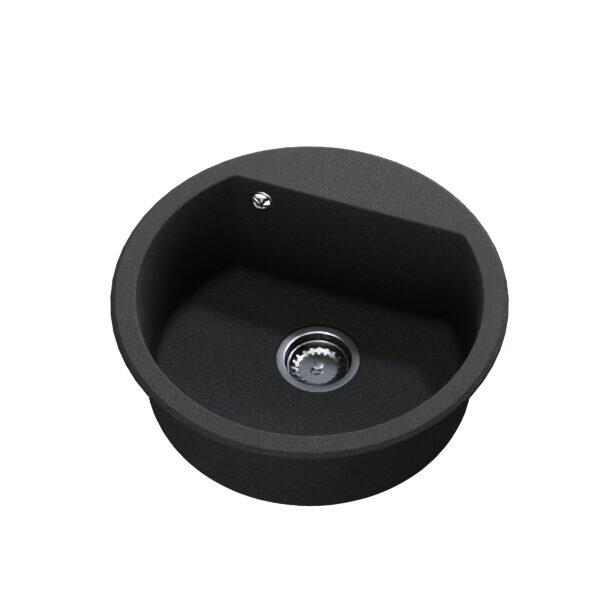 Chiuveta bucatarie Hausberg Adina HBC-9701, compozit, negru, cuva rotunda, diametru 51 cm