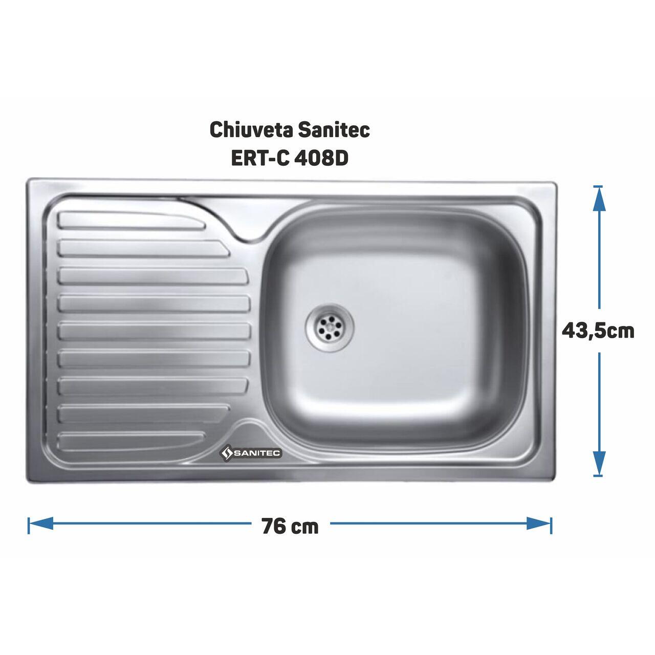 Chiuveta Sanitec ERT-C 408D, pentru blat, cuva dreapta, anticalcar, 76x43,5cm, Inox