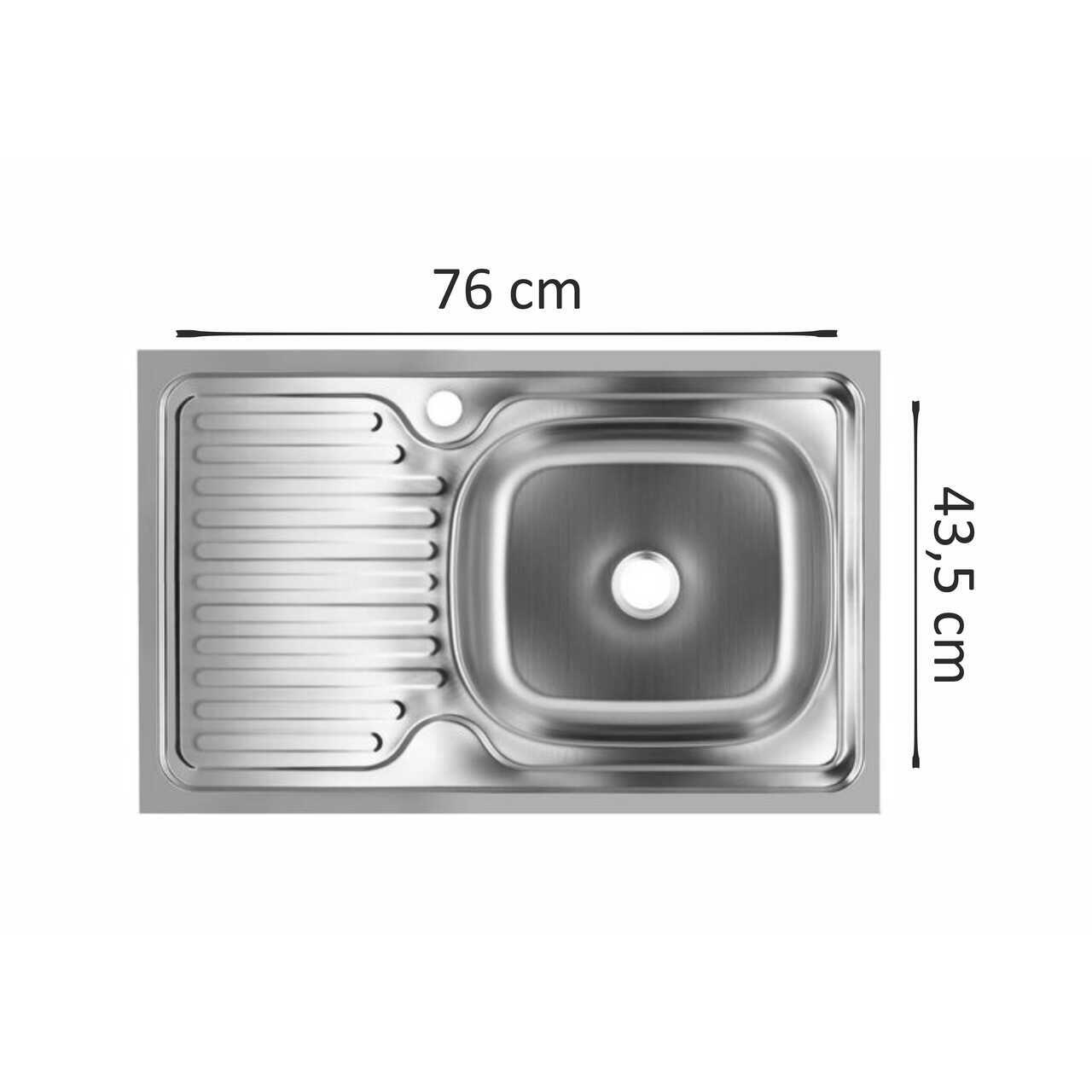 - Dimensiuni chiuvetă: 76x43,5 cm – oferă spațiu generos pentru diverse activități de bucătărie.