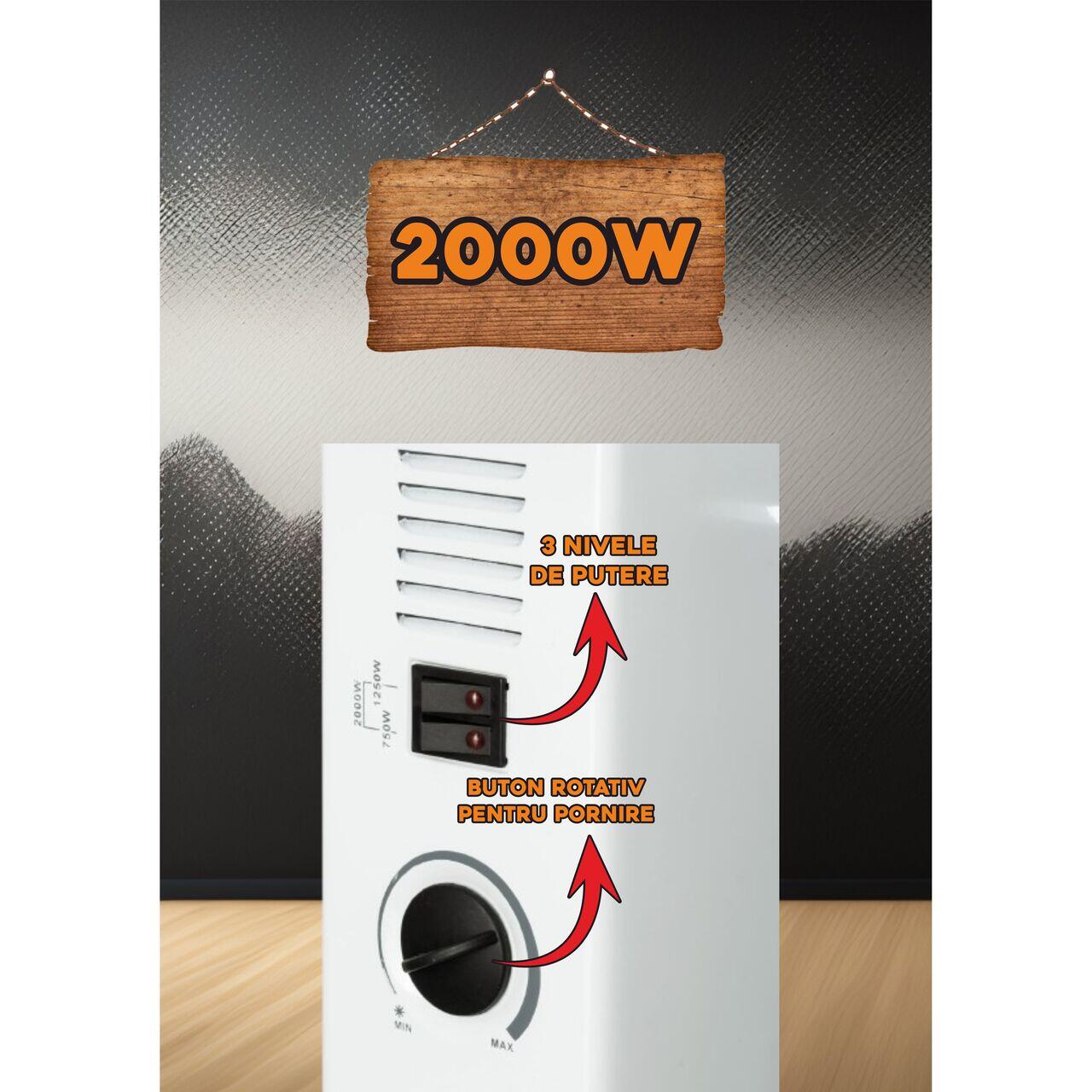 Convector electric Hausberg HB-8200, 2000 W, 3 nivele de putere, termostat reglabil