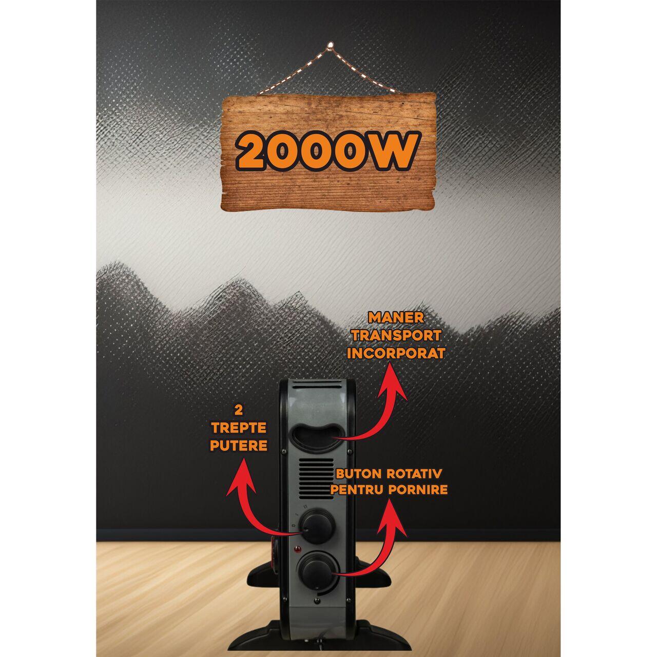 Putere de 2000W, ideală pentru încălzirea rapidă a camerelor medii și mari.