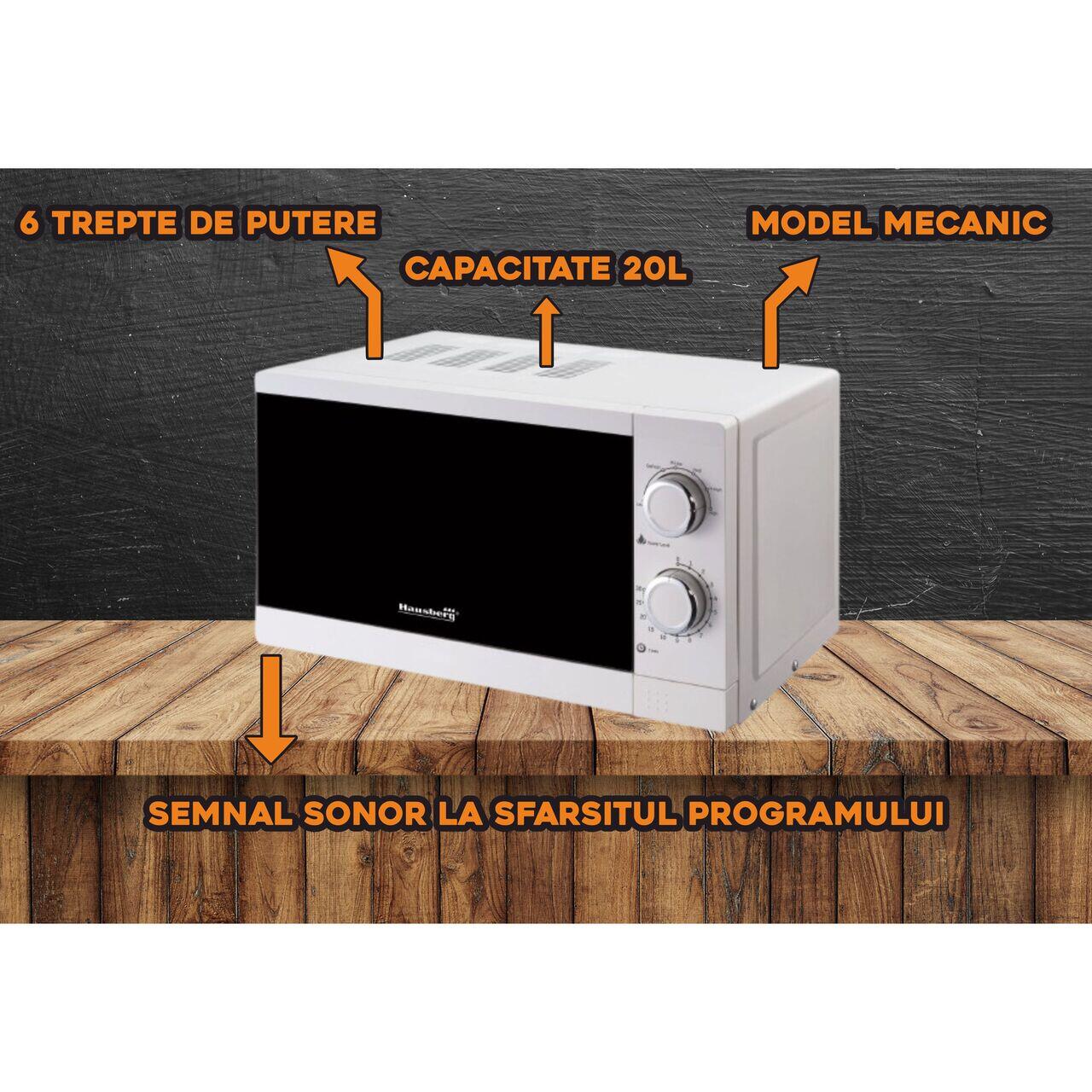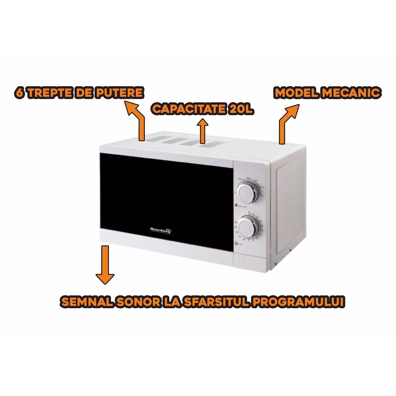 🔥 Cuptor cu Microunde Hausberg HB-8005AB, 20L, 700W, 6 Niveluri Putere, Funcție Dezghețare, Control Mecanic, Alb