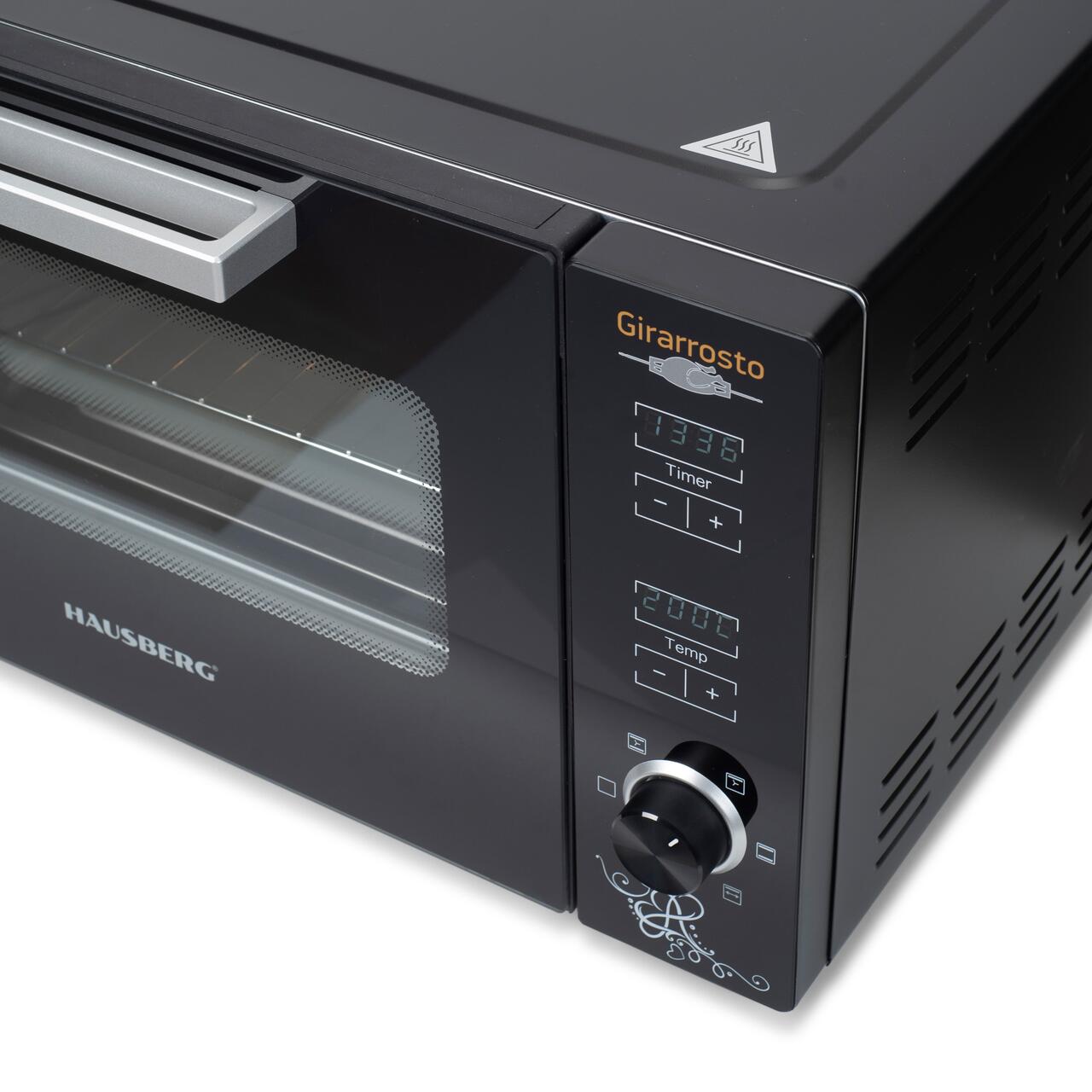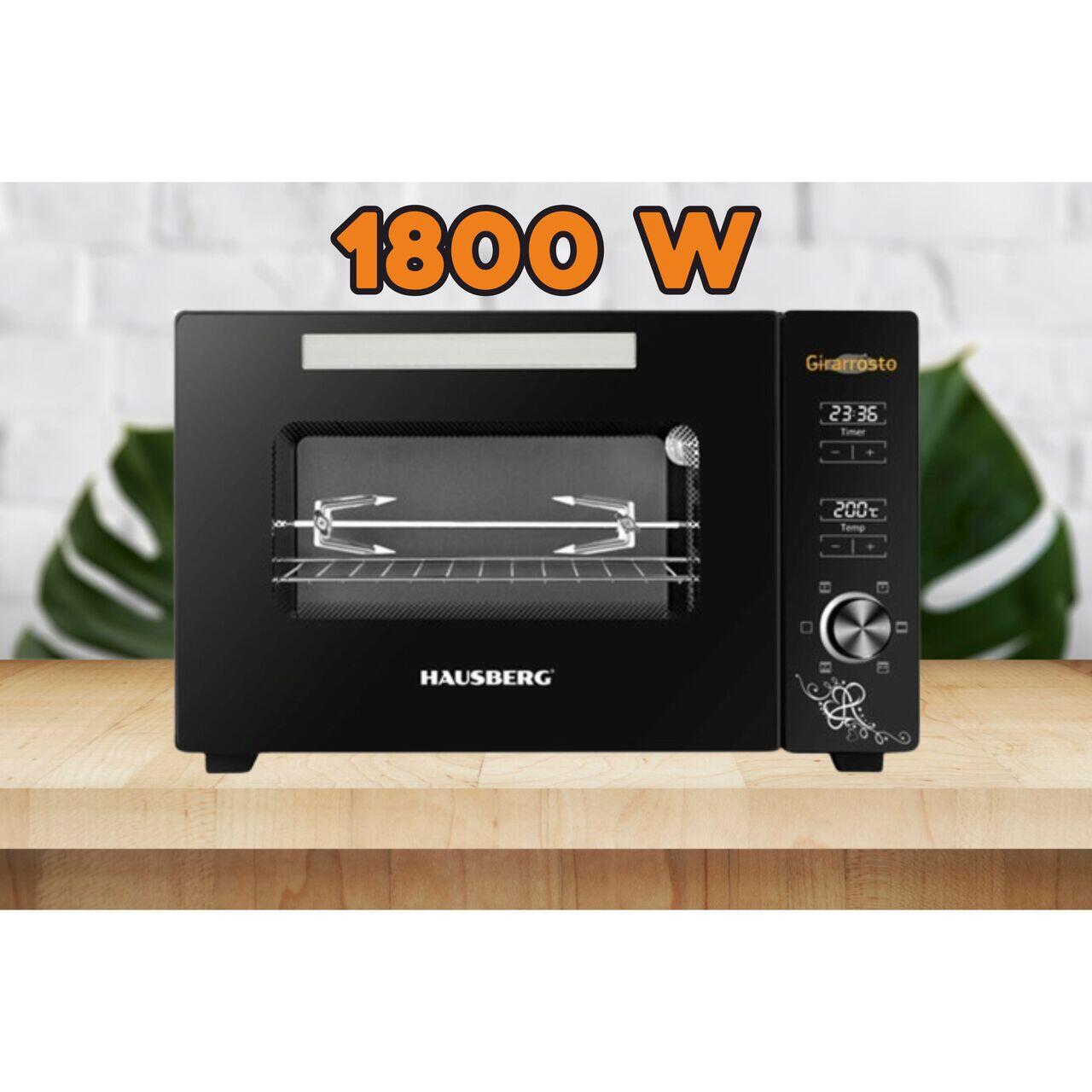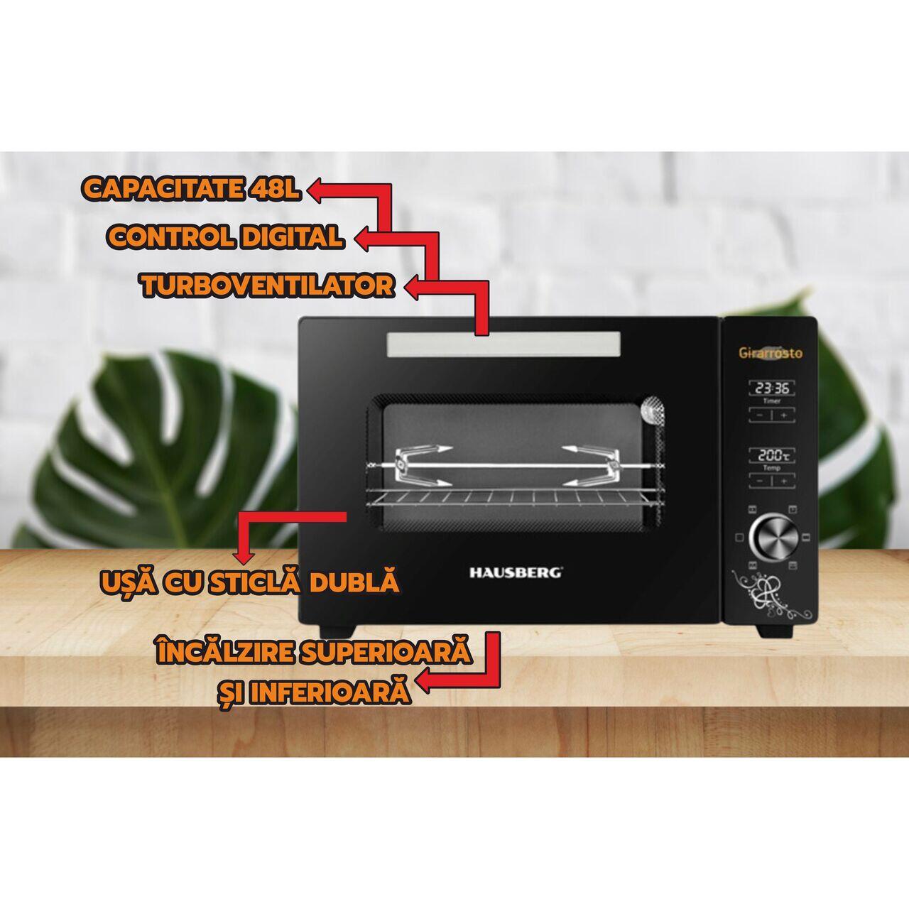 Cuptor electric digital cu rotisor si ventilator HAUSBERG HB-9260, 1800W, Turbo, Capacitate 48L, Control temperatura 230 grade Celsius, Lumina interior, Negru