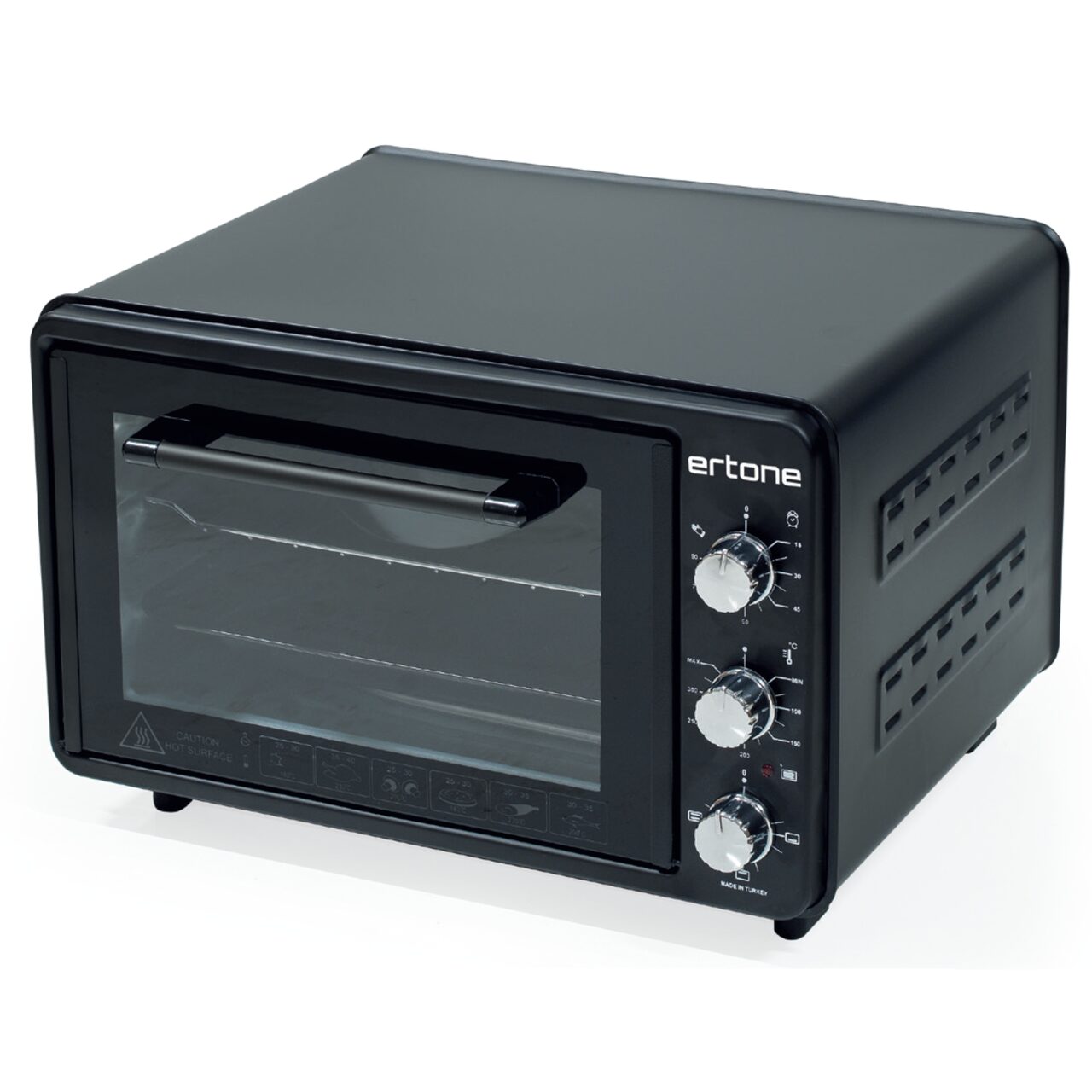 Ertone MN9060GR este un cuptor electric de încredere, proiectat pentru uz zilnic în orice bucătărie modernă. Cu o capacitate de 36 litri, putere totală de 1420W și dotări esențiale precum cronometru cu alarmă sonoră și termostat reglabil, acest aparat este perfect pentru rețete variate – de la prăjituri și fripturi, la pizza sau legume gratinate.