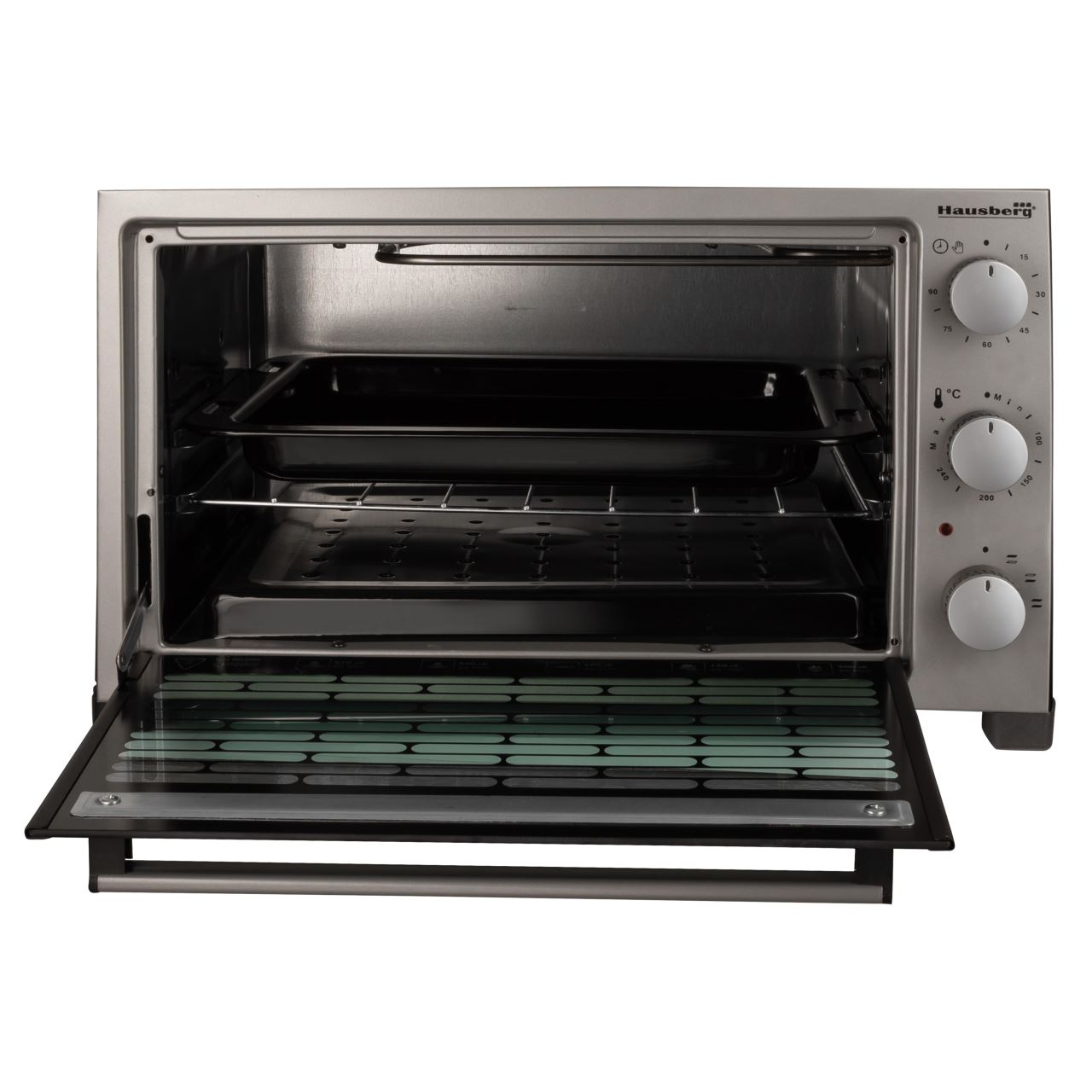 Cuptor electric Hausberg HB 9320 , 1420 W, 38 L, timer, termostat, 2 tavi, Gri/Negru