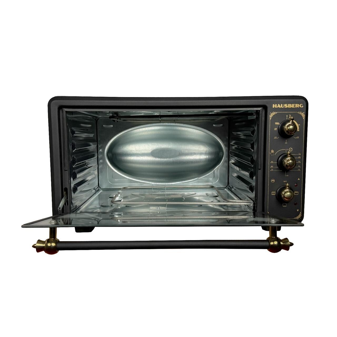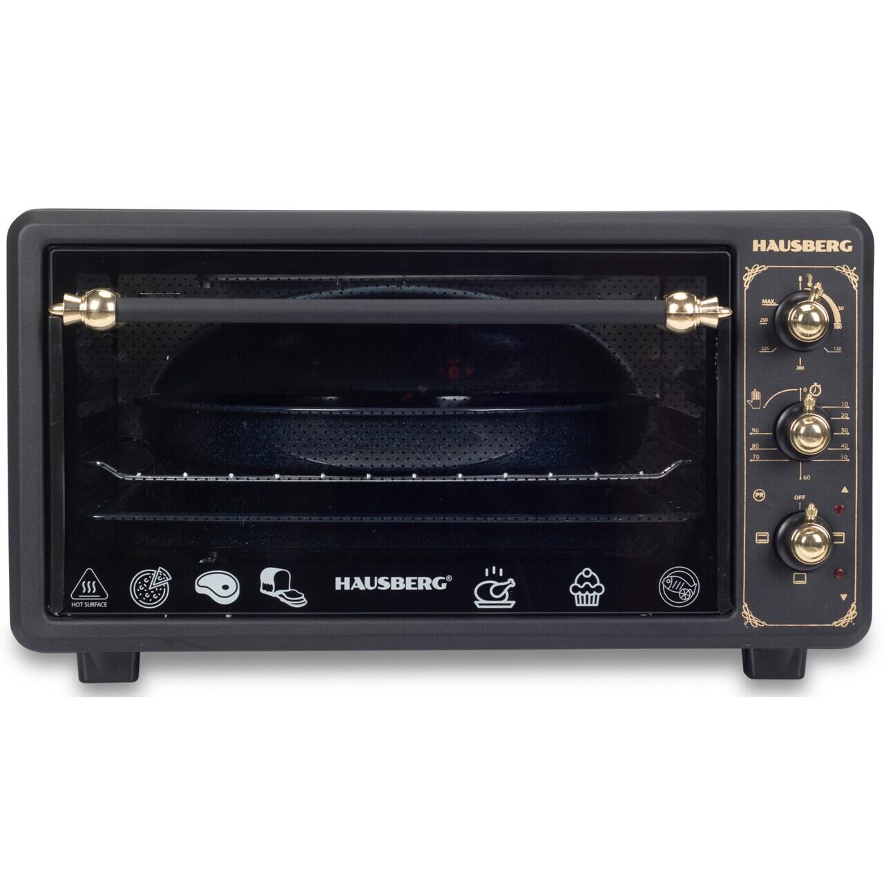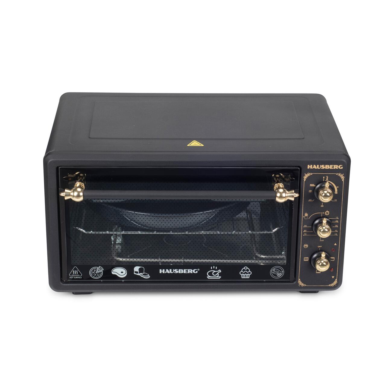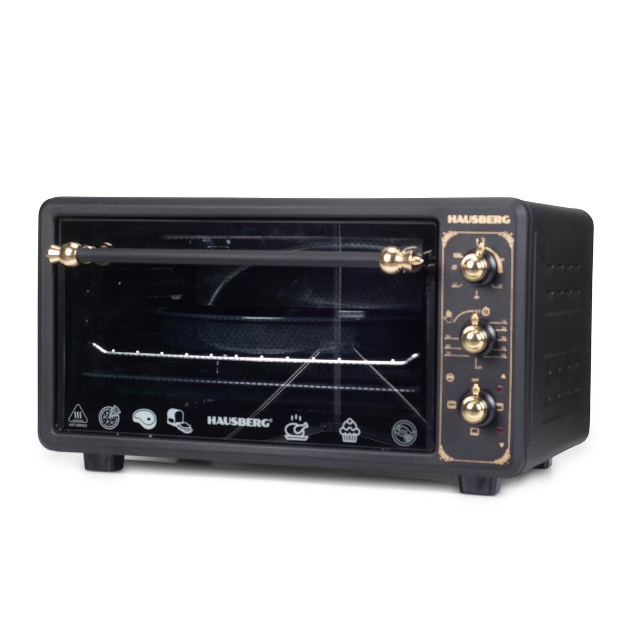 Cuptor electric Rustic HAUSBERG HB-8001RST, 1400W, 48l, Timer mecanic, Termostat reglabil, 4 nivele de inaltime a tavii, usa din sticla rezistenta la temperature ridicate, panou mecanic, Negru-Aur...